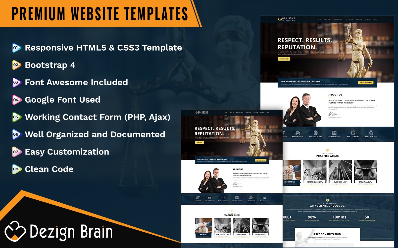DG Justice DB Justice Lawyer has a very rich Theme with modern look and feel. We’ve created this theme with pure HTML and CSS and it’s the best you could search. The entire attorney related firms and organizations can use this theme to build their website.