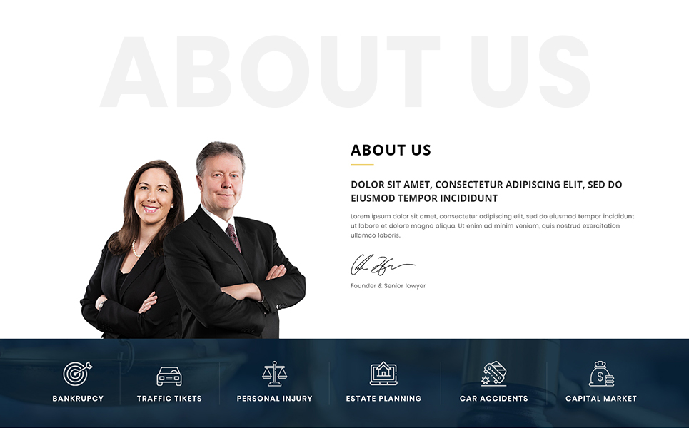 Practical Sections: Sections created in the Theme designed specifically with lawyers in mind, all easily customizable.