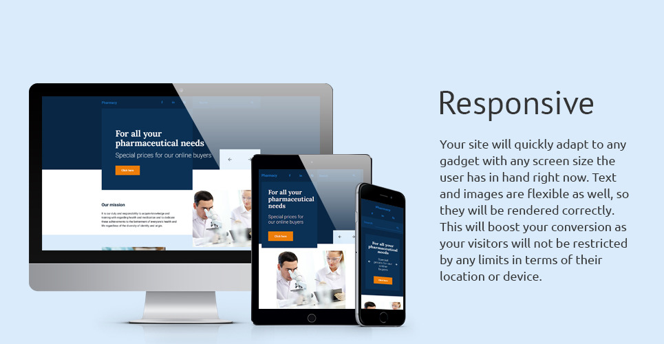 This is the FREE version of the drug store landing page template. Here you can find a huge variety of pages you need for your website. The template has all modern features as google fonts, slider, google maps, working forms. And of course, it is optimized for speed.