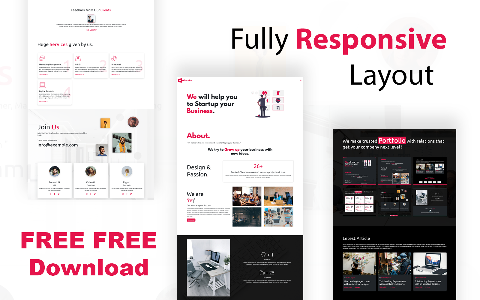 Dvarka - Free Startup Business One Page Template is Creative and Clean design, Comes with Letest Technology Bootstrap 5 , and this theme is Quick & Easy to Use for developer and Designers.