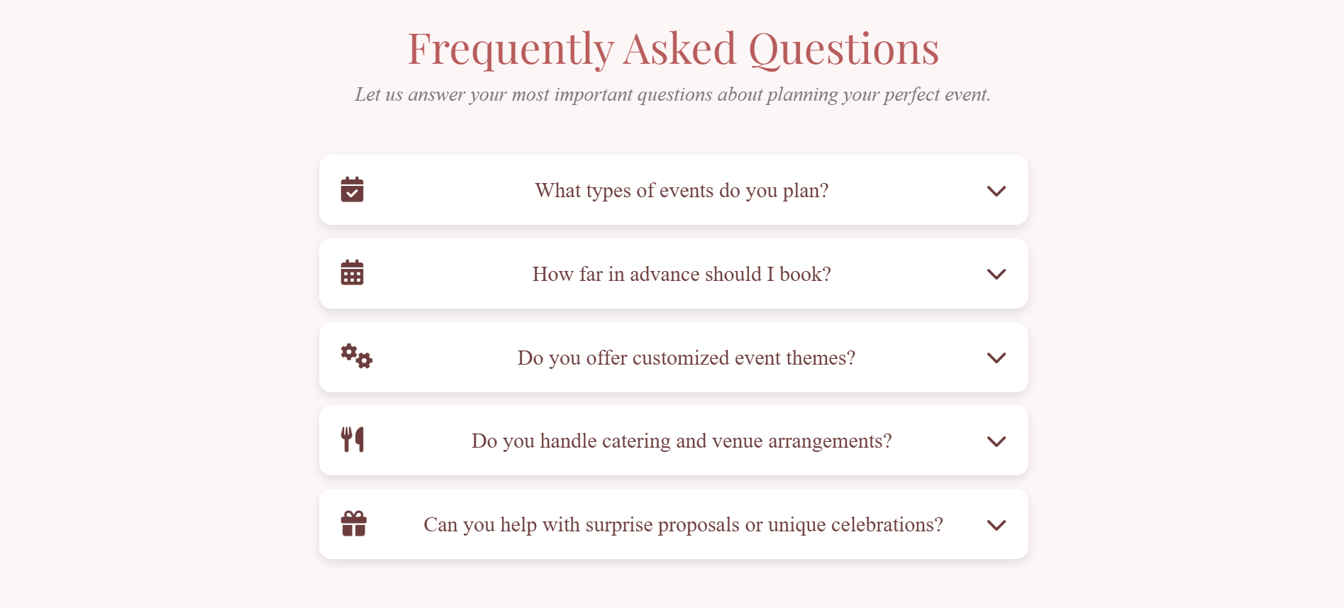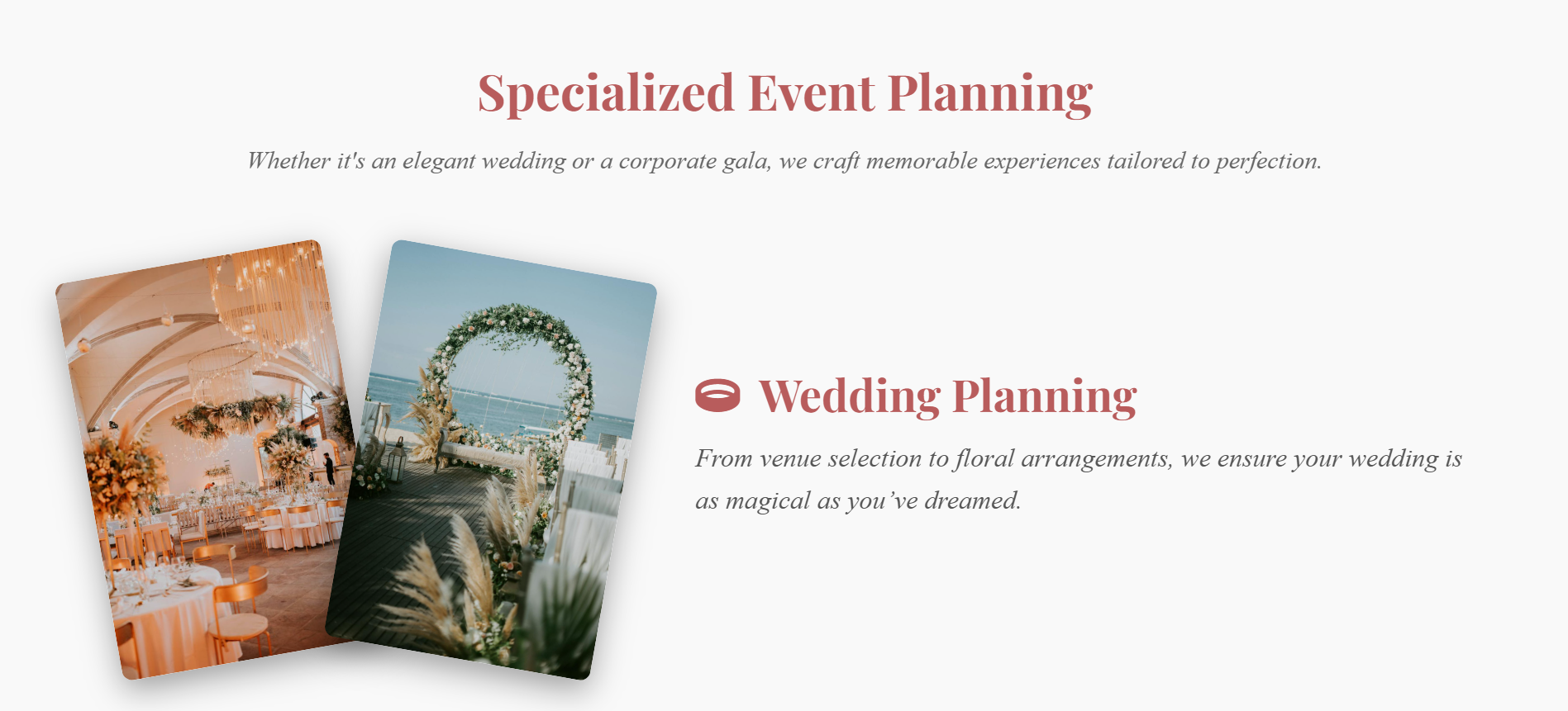✔ Stunning Service Section – Present your event planning expertise beautifully