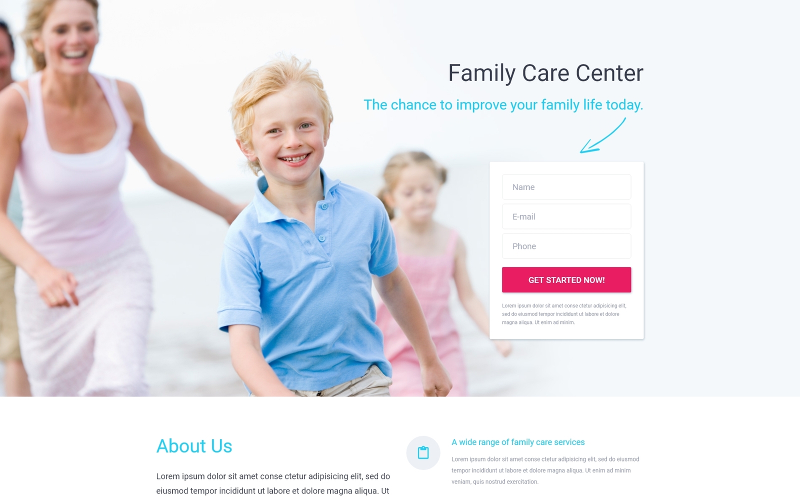A website of a family medical care center has to be able to inspire trust of visitors. Family landing page template was created just for that purpose. The light and calm design make viewers feel confident and positive. No matter what device a visitor uses, either a mobile phone or his home computer - the picture will be sharp and beautiful. The accurate contact form will help potential patients communicate with you and make a reservation.