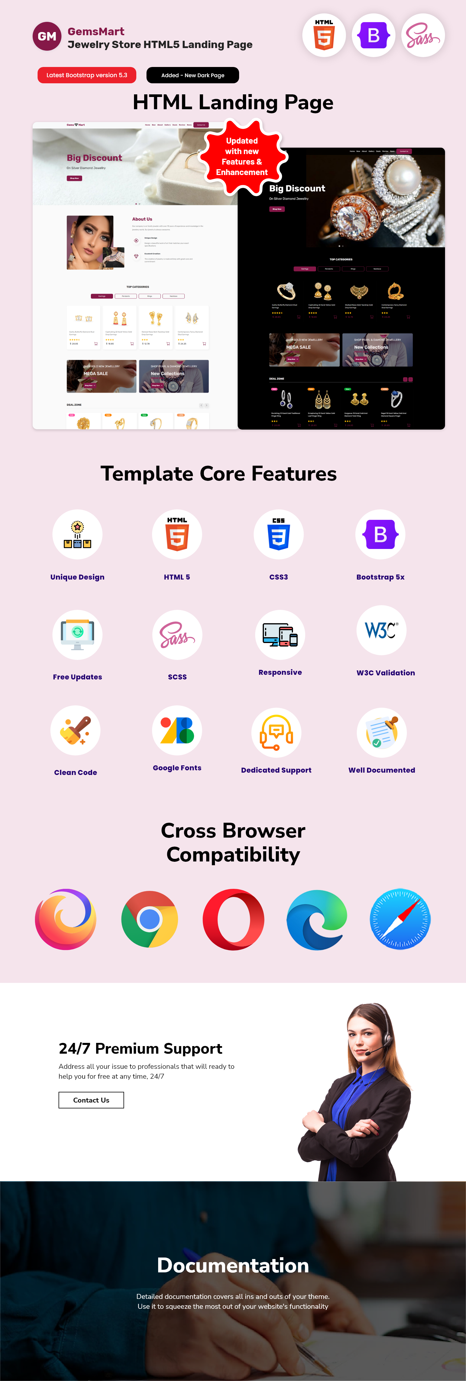 If you are looking for a brand new template for gems, stones, Dimond Jewelry, or any other type of online shop, then our GemsMart will prove to be the perfect choice for you. This is a fully functional, responsive, website template with the latest version of Bootstrap, SCSS, and jQuery in mind.