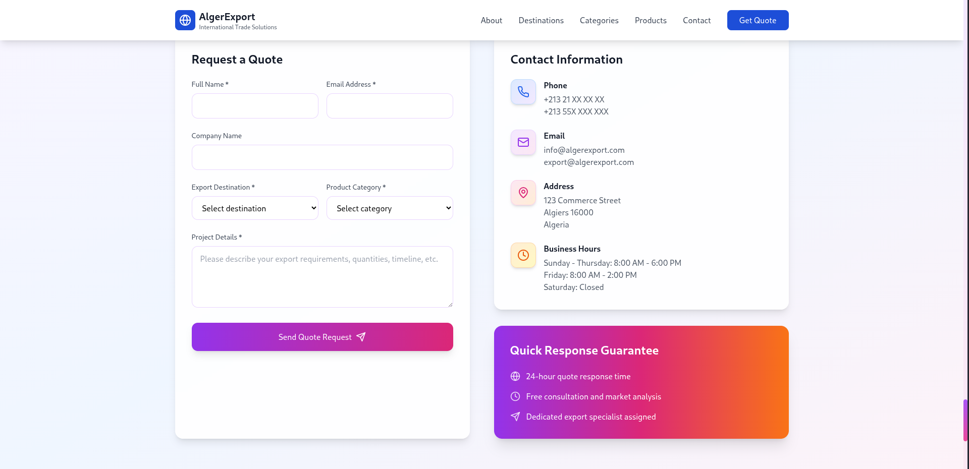 - Credibility & Trust : Interactive map and export coverage build immediate authority, showing your global footprint at a glance