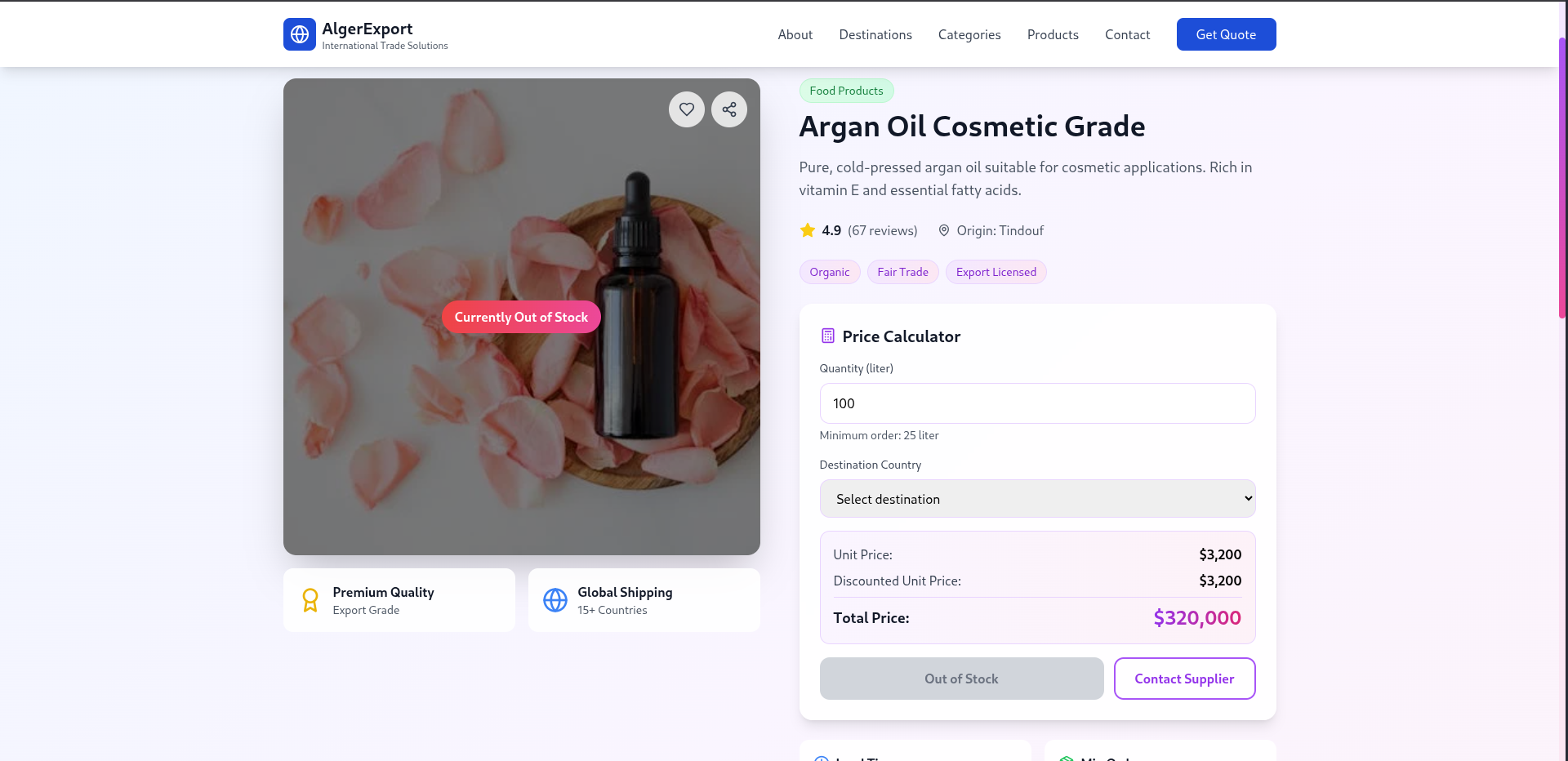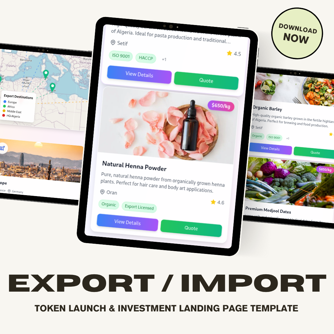 - Interactive Map : Display your export routes and country coverage through an engaging, clickable map—ideal for showcasing global reach