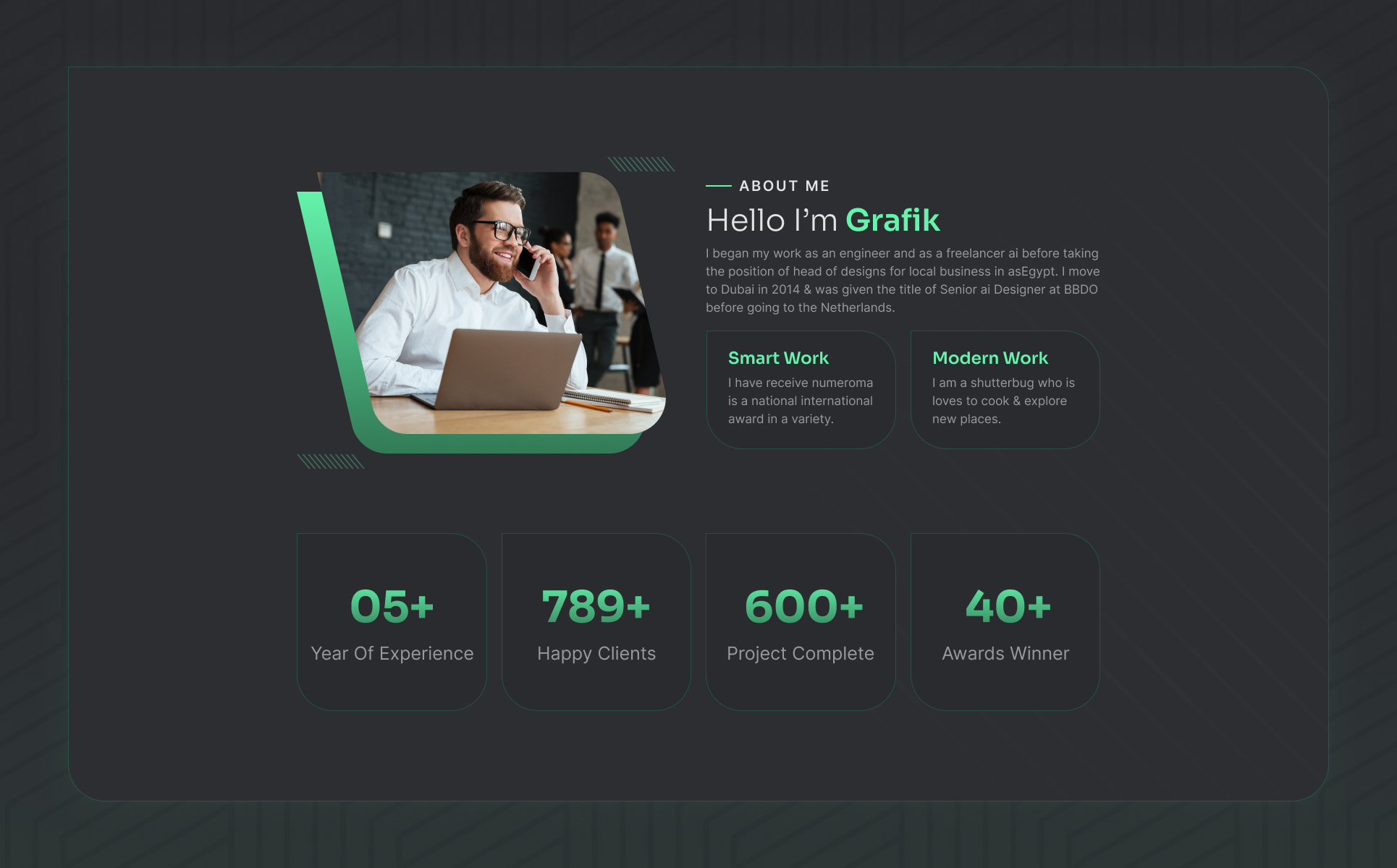 This graphic designer portfolio template is visually appealing and practical for presenting your services professionally. Whether you're a freelancer or agency designer, Grafik v3 gives you the edge to grow your presence.