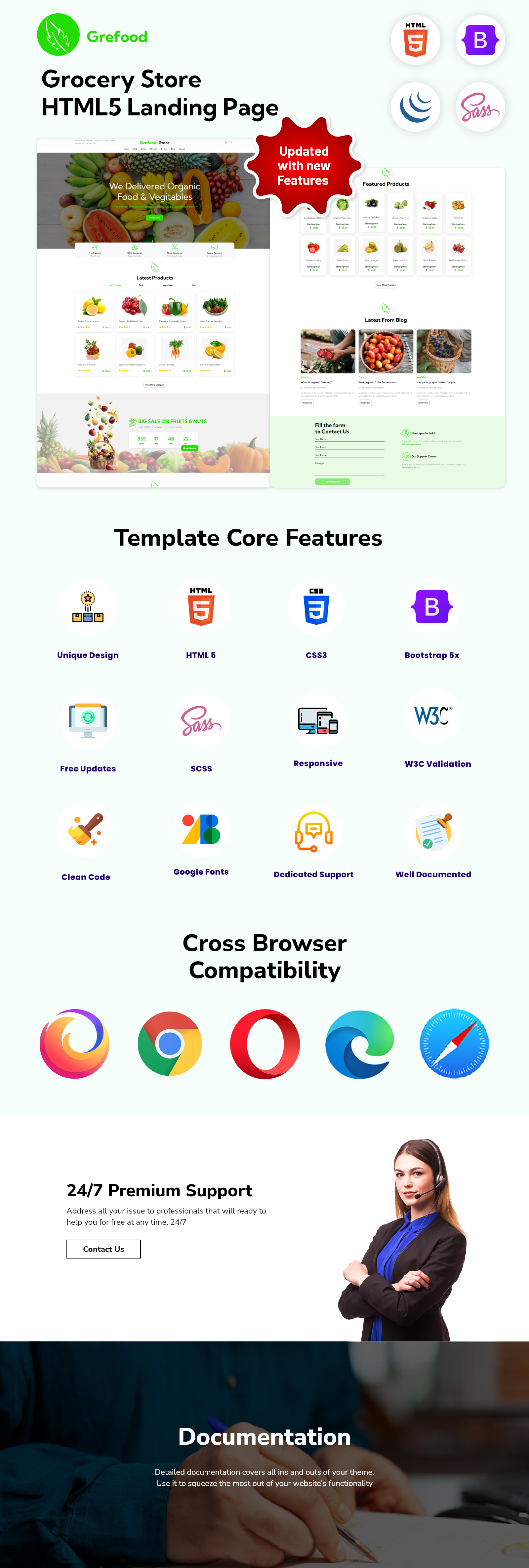 Grefood - Grocery Store HTML5 Landing Page Landing Page Template