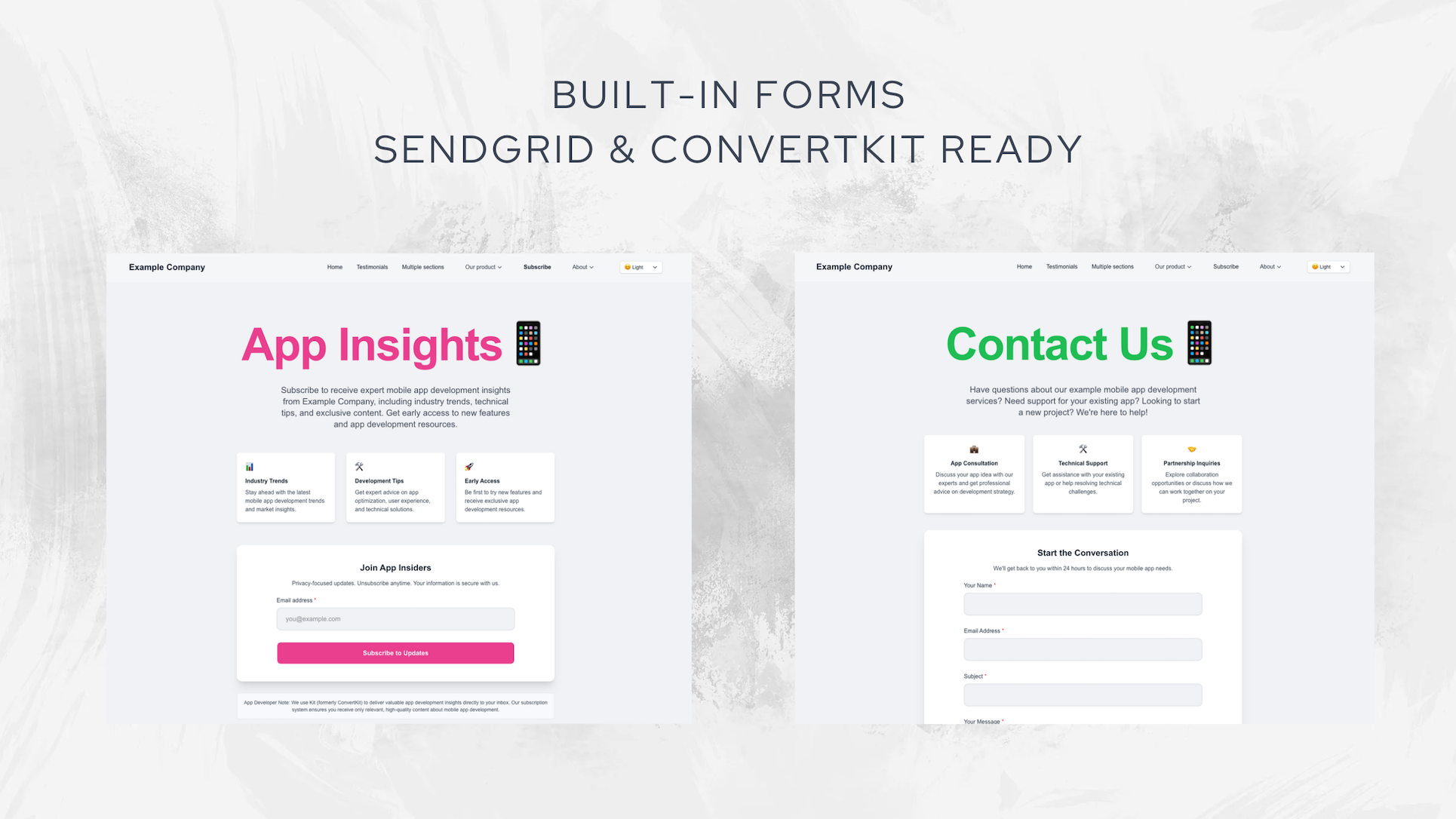 - Analytics & Integrations - Compatible with popular providers like Google Analytics 4, Plausible, Fathom, and includes form integrations with Send
