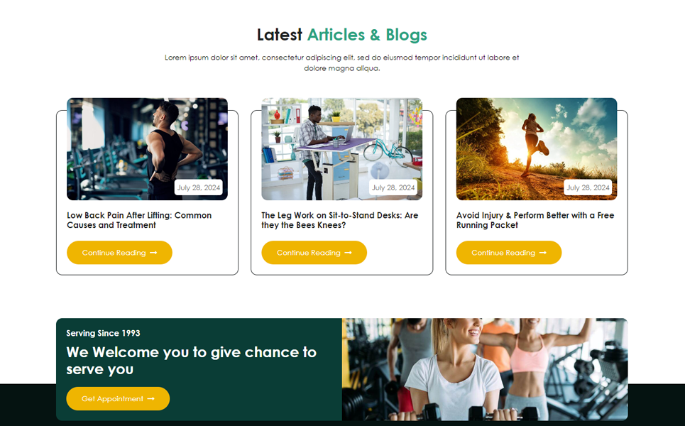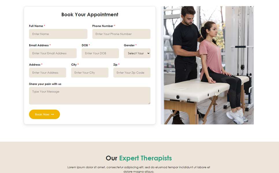 - Service Highlights: Dedicated sections to showcase therapy programs, treatments, and wellness services.