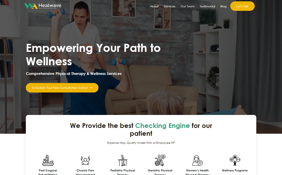 Healwave: Comprehensive Physical Therapy & Wellness Clinic Landing Page Template
