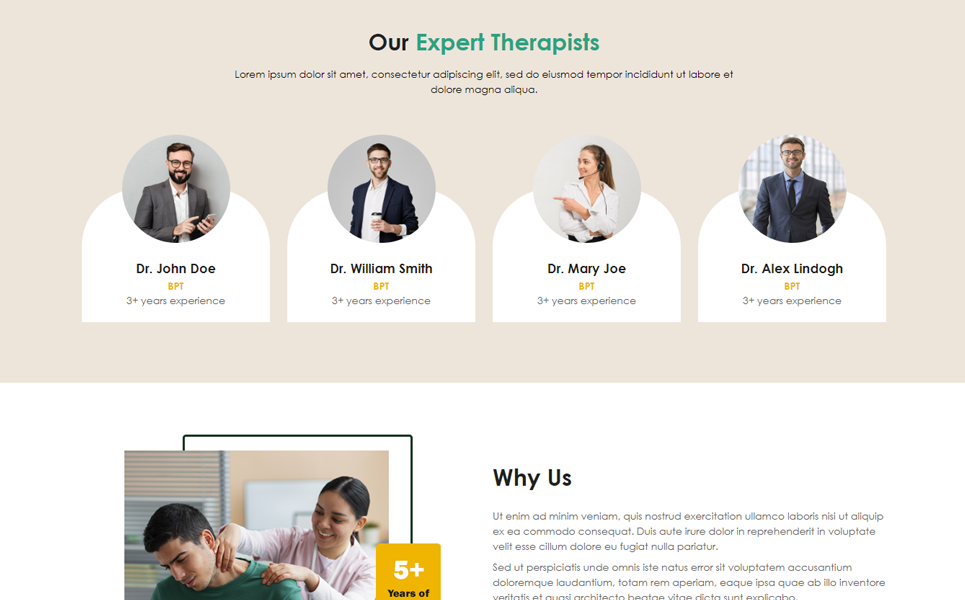 - Team Profiles: Introduce healthcare professionals with photos, bios, and specialties.