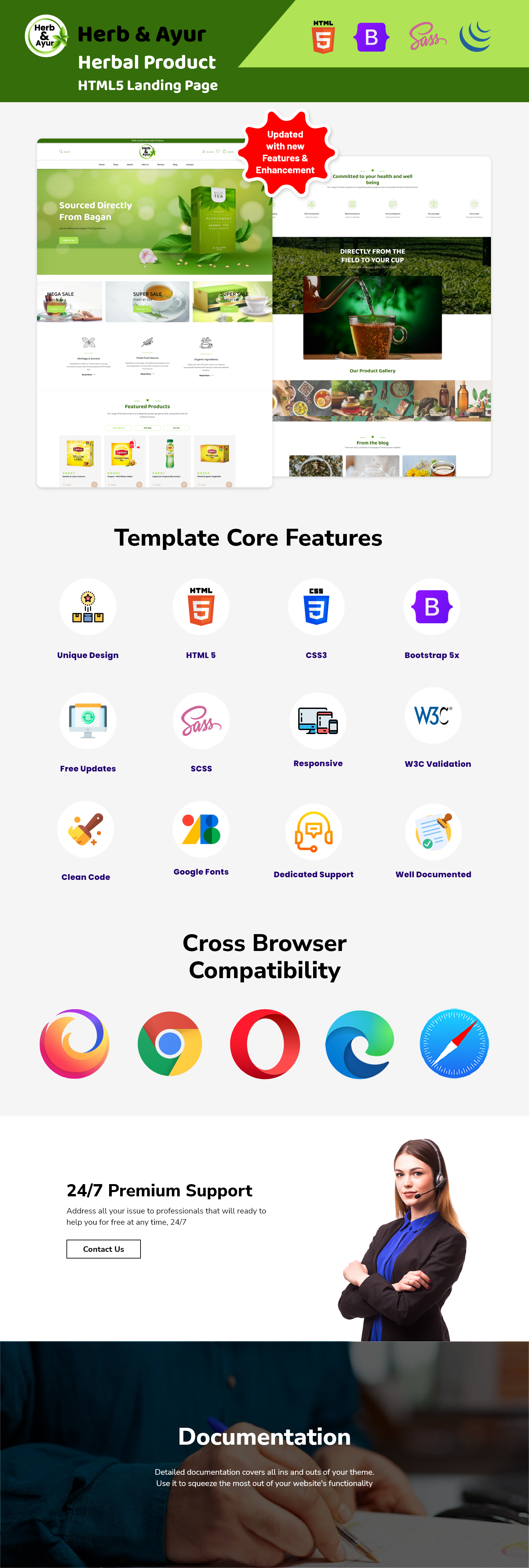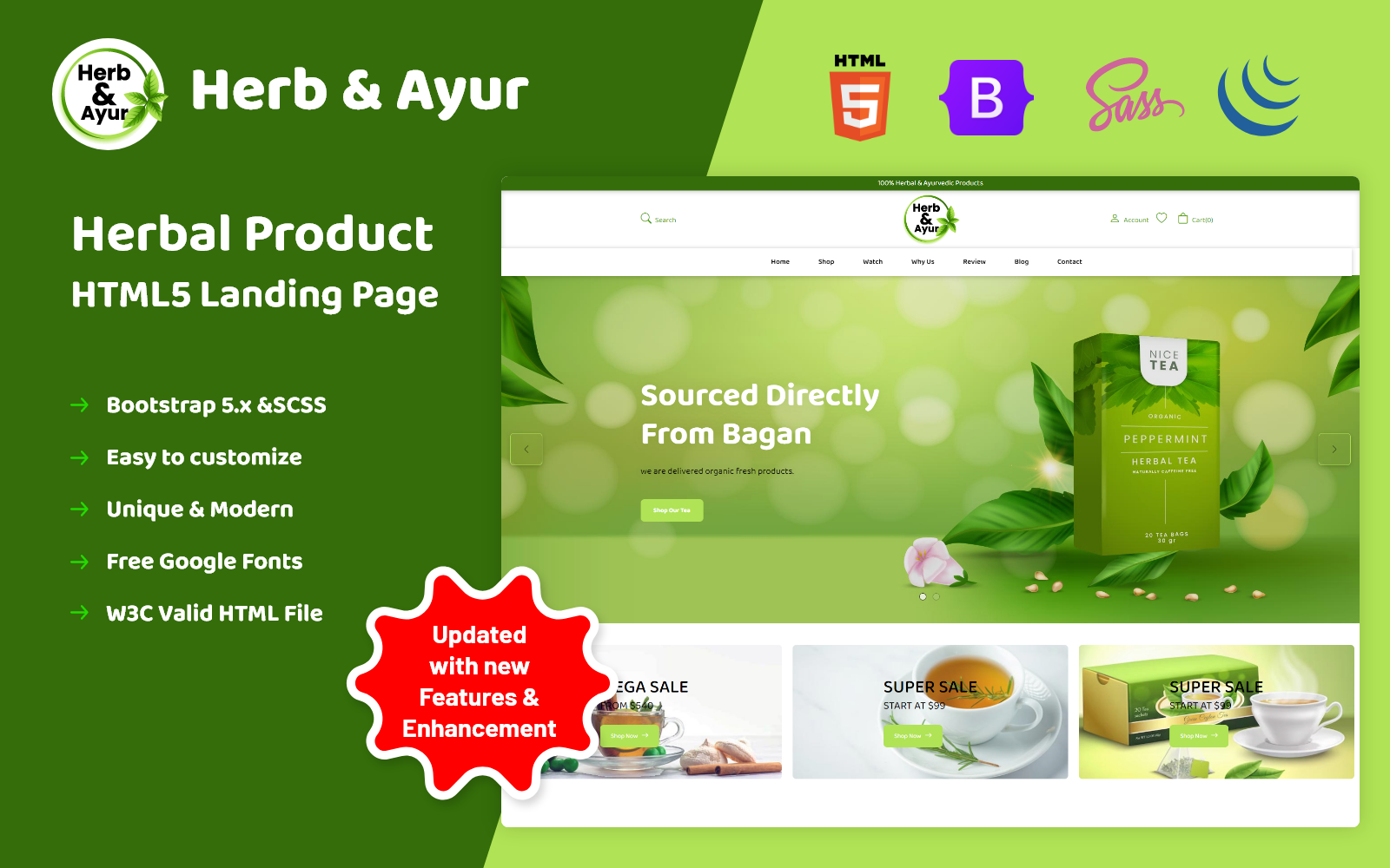 Herb & Ayur is a landing page template for herbal products made in html5 and SCSS. This is a desirable template made for selling herbal products using which you can easily take your herbal product promotions with easy reach to the customers. This landing page is made up of each section and component that are in accordance with the marketing target. Herb & Ayur Landing Page Template is built with the best and latest technology components thus you will not need any other template to serve your marketing needs. It uses the latest version of Bootstrap framework along with cool and necessary animations by jQuery plugin. Designed in this way, this landing page in itself will facilitate the creation of a high-quality website with excellent design.