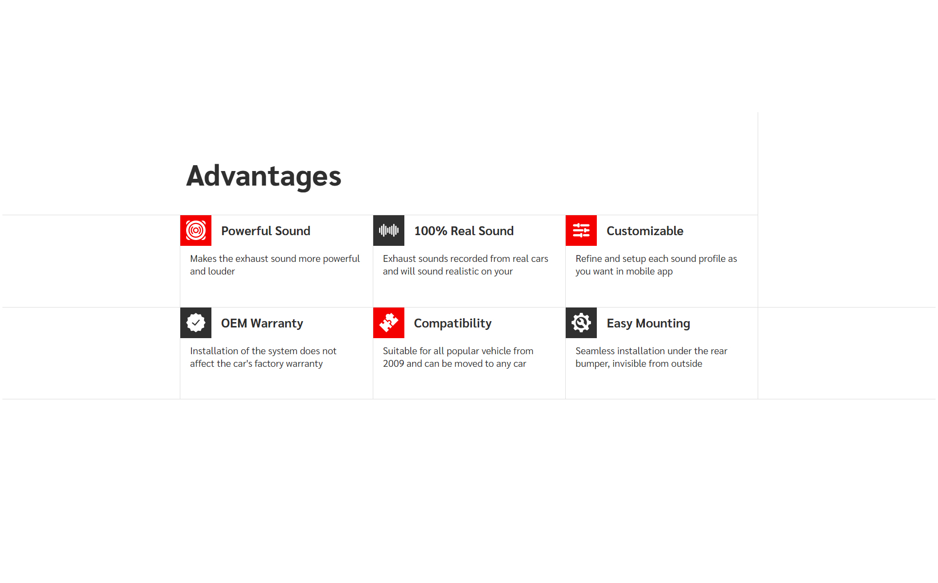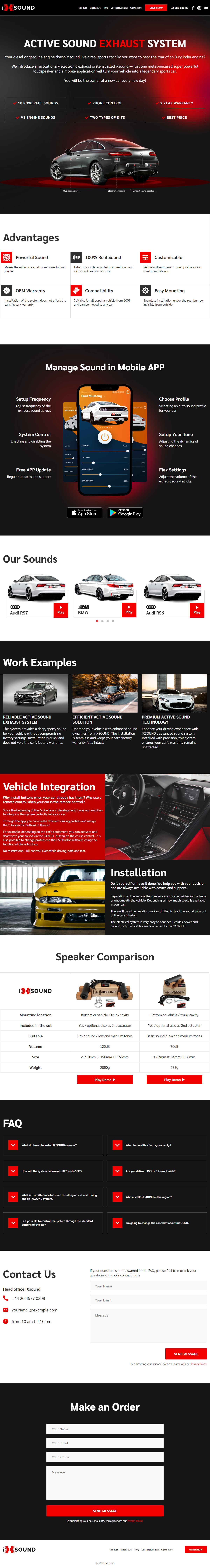 The most attractive design with a wonderful combination of a red collar and a shade of gray.The main block clearly describes the purpose of the site and selects a thematic three-dimensional picture.The "Advantages" section will convince your customers to buy the product from you.There is also a block that will redirect users to your mobile application.The "Our Sounds" section is a slider that can contain any number of blocks with your products.Also on the site there is a block with answers to frequently asked questions, a feedback form for questions or suggestions and a form for ordering goods.