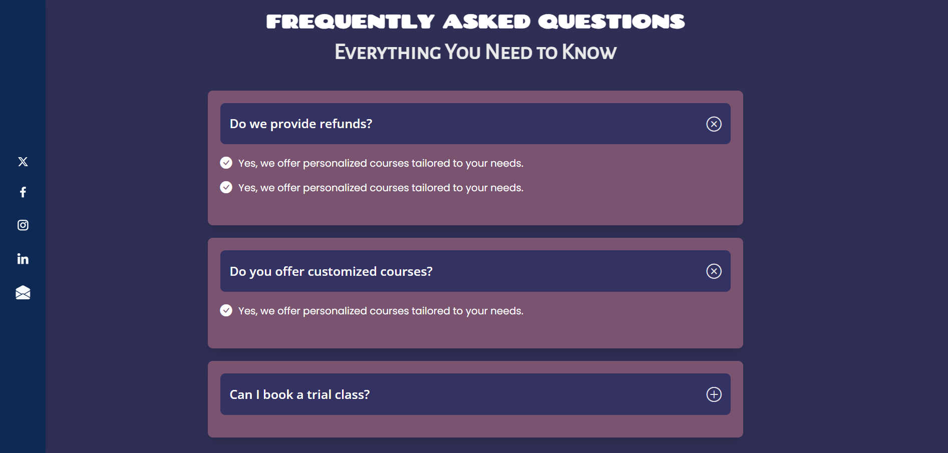 Showcase your featured courses, share testimonials, and display essential information in an attractive and organized manner.