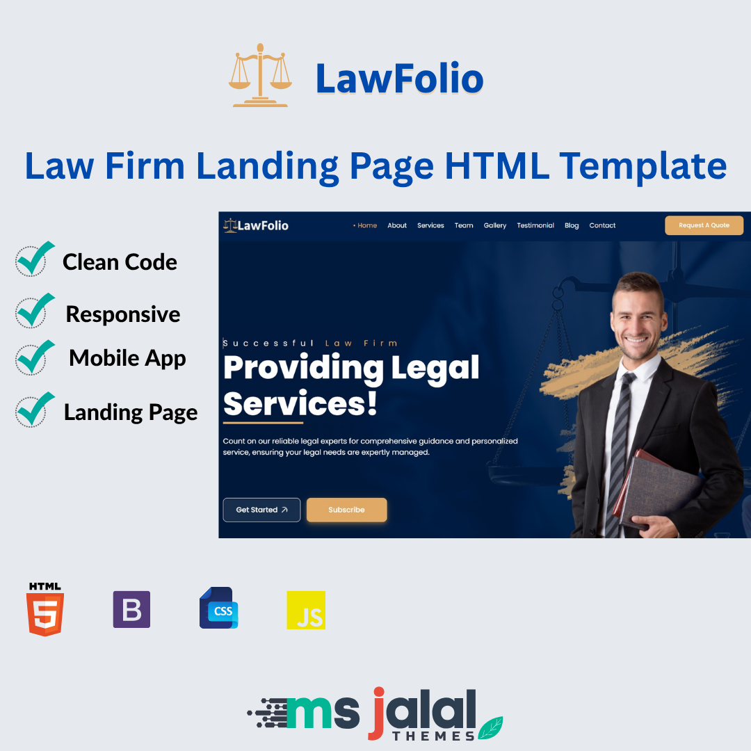 LawFolio- Lawyers & Law Firm Landing Page HTML Template tailored specifically for legal professionals, law firms, attorneys, and legal consultants who want to establish a strong online presence. With a clean, elegant, and modern interface, LawFolio offers a highly responsive and user-friendly experience that adapts seamlessly to all screen sizes—from desktops and laptops to tablets and smartphones. Built with HTML5, CSS3, and Bootstrap 5, LawFolio ensures fast loading speeds, optimal performance, and easy customization. Whether you’re a solo practitioner or part of a larger legal team, LawFolio provides a solid foundation to showcase your services, team profiles, practice areas, client testimonials, and contact information in a professional and engaging manner.