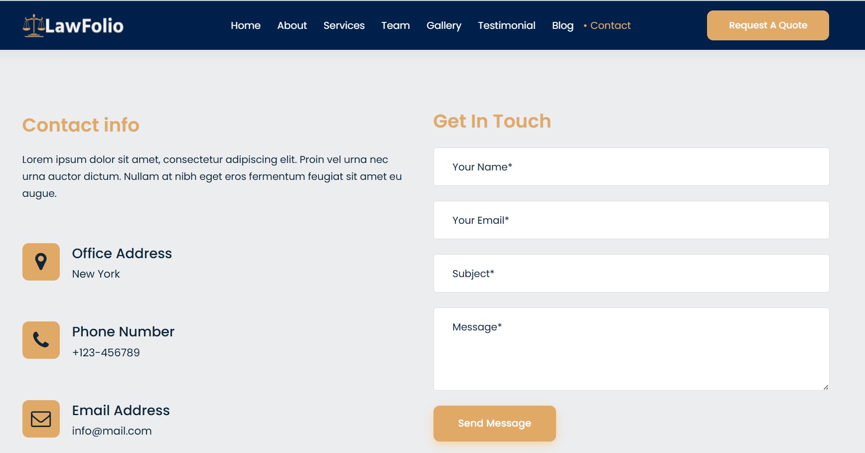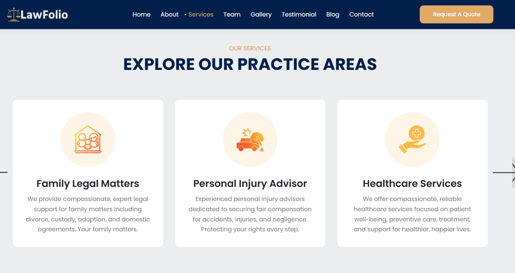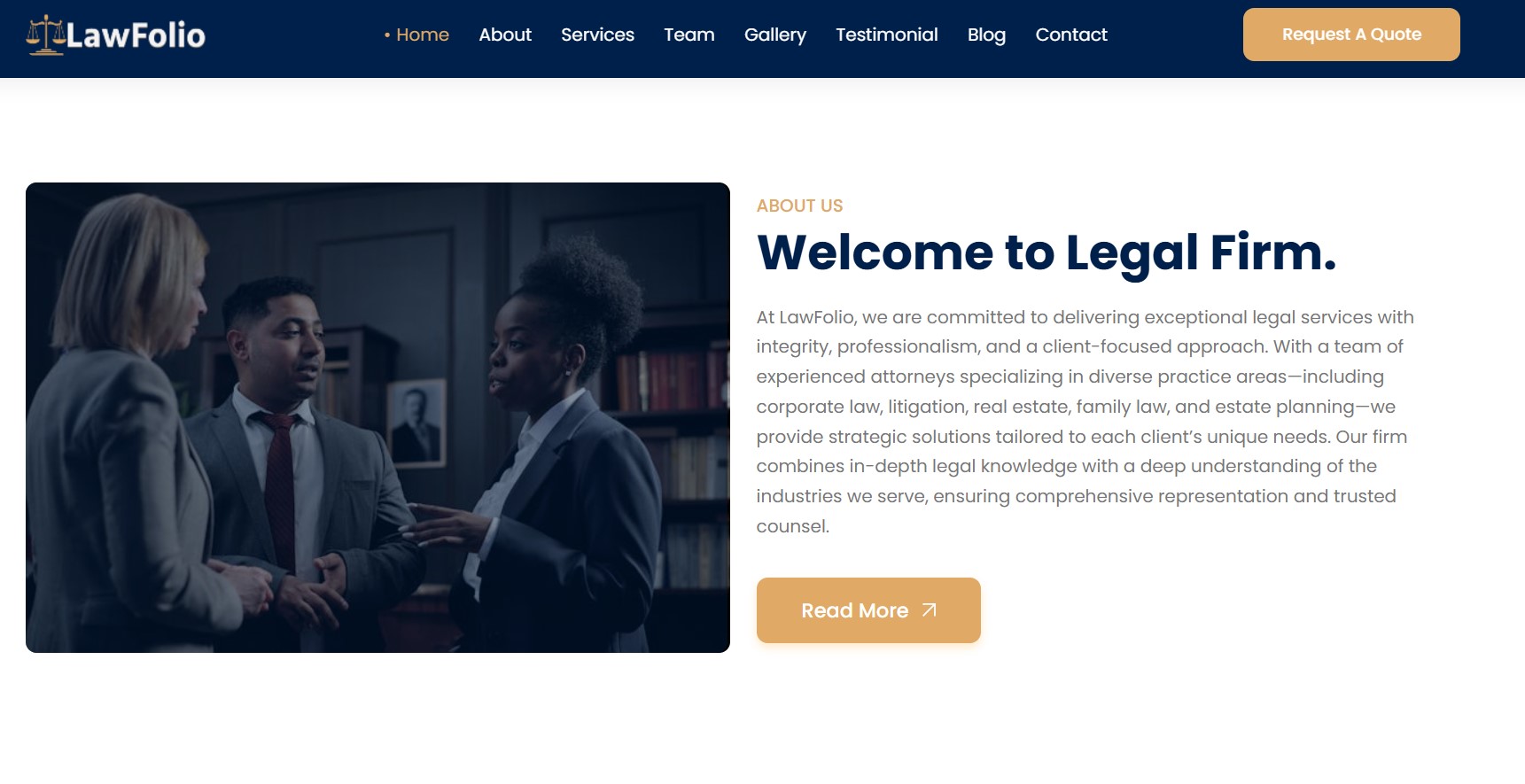 LawFolio- Lawyers & Law Firm Landing Page HTML Template tailored specifically for legal professionals, law firms, attorneys, and legal consultants who want to establish a strong online presence. With a clean, elegant, and modern interface, LawFolio offers a highly responsive and user-friendly experience that adapts seamlessly to all screen sizes—from desktops and laptops to tablets and smartphones. Built with HTML5, CSS3, and Bootstrap 5, LawFolio ensures fast loading speeds, optimal performance, and easy customization. Whether you’re a solo practitioner or part of a larger legal team, LawFolio provides a solid foundation to showcase your services, team profiles, practice areas, client testimonials, and contact information in a professional and engaging manner.