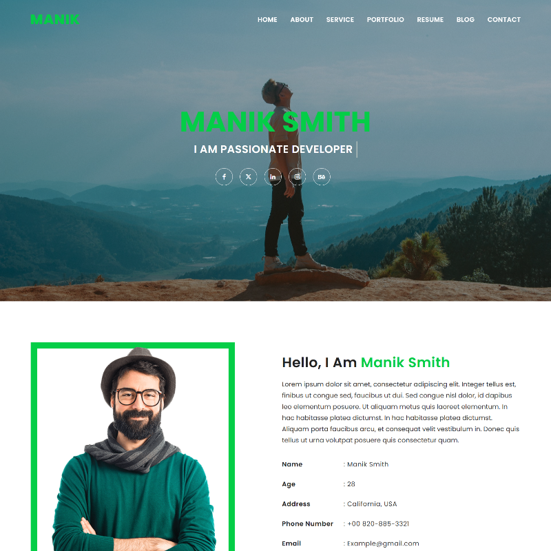 Manik is a Modern, Professional, Creative, and Responsive Bootstrap 4 template for showcasing your portfolio and personal information. It suits the best web designers, Graphic designers, UX designers, Web developers, Media agencies, Small businesses and creatives. All components used in this theme are well-commented, W3C validated and are well documented.