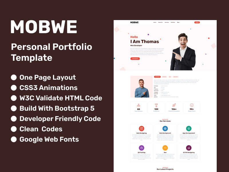 Mobwe - Personal Portfolio One Page HTML Template Landing Page Template