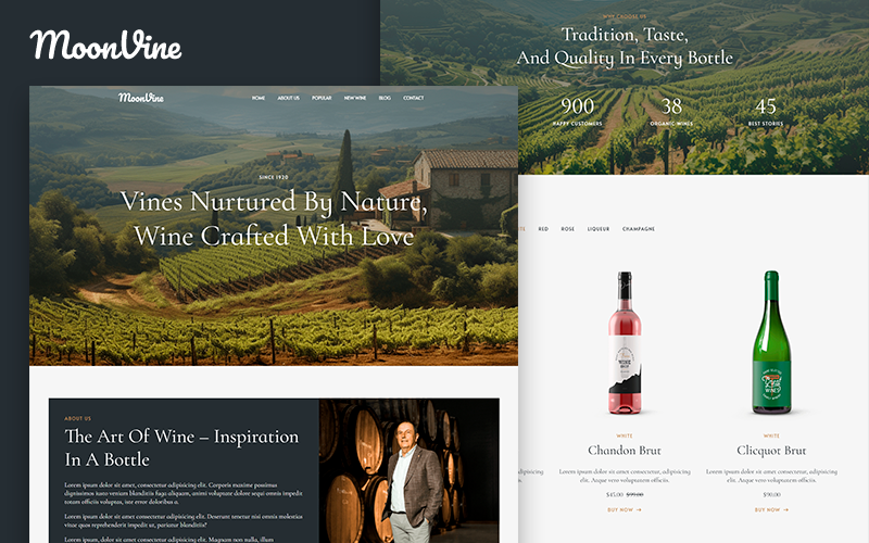 Moonvine is an HTML5 landing page created specifically for wineries, wine cellars, shops and tasting rooms.