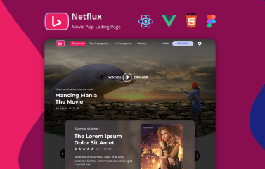 Netflux - Streaming Movie App React Vue HTML and Figma Landing Page Template