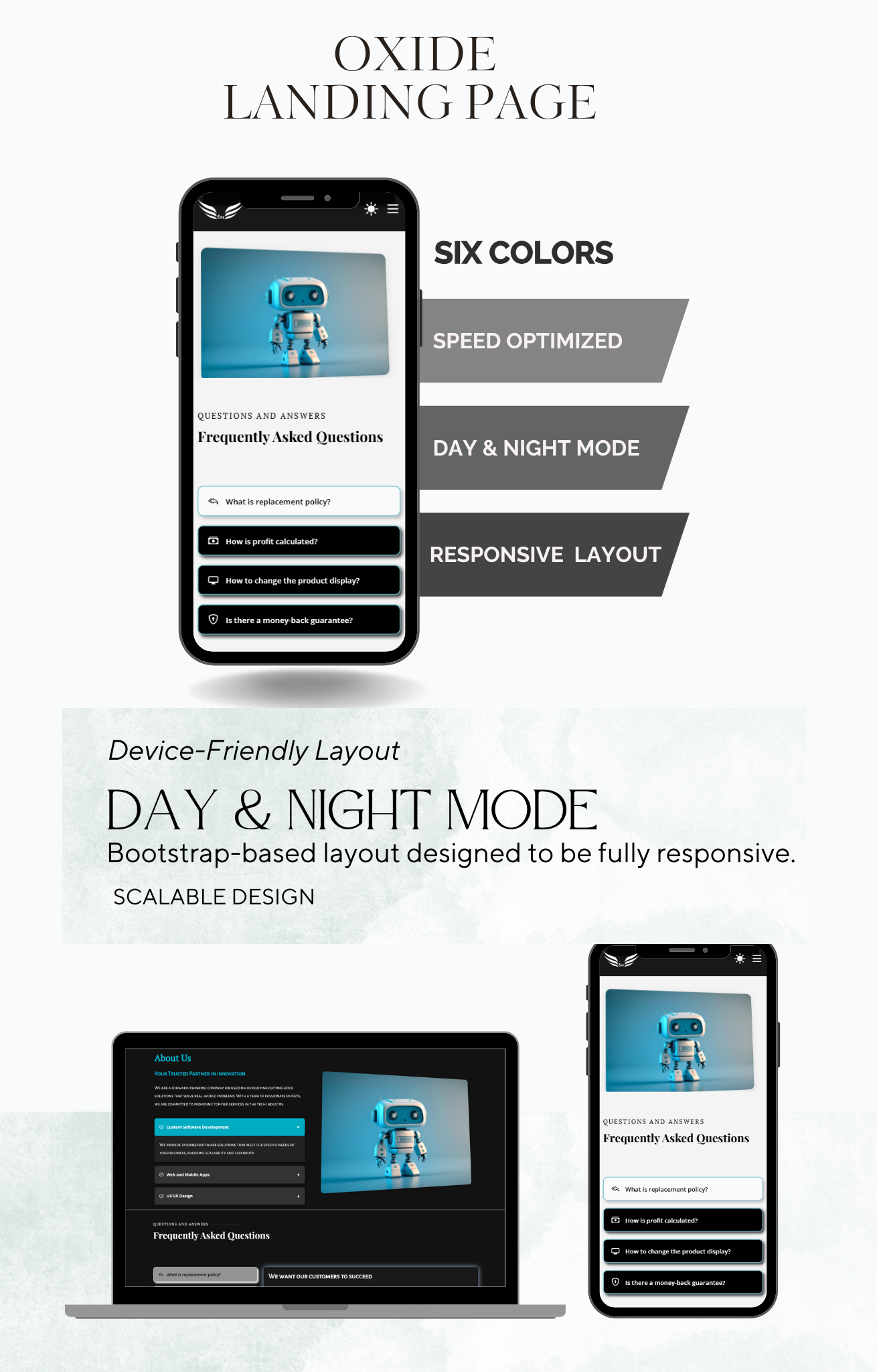 - Multiple Color Templates: With 6 templates and 2 color mode combinations, resulting in a total of 12 variants, OXIDE offers ultimate design flexibility to align with your IT business’s branding.