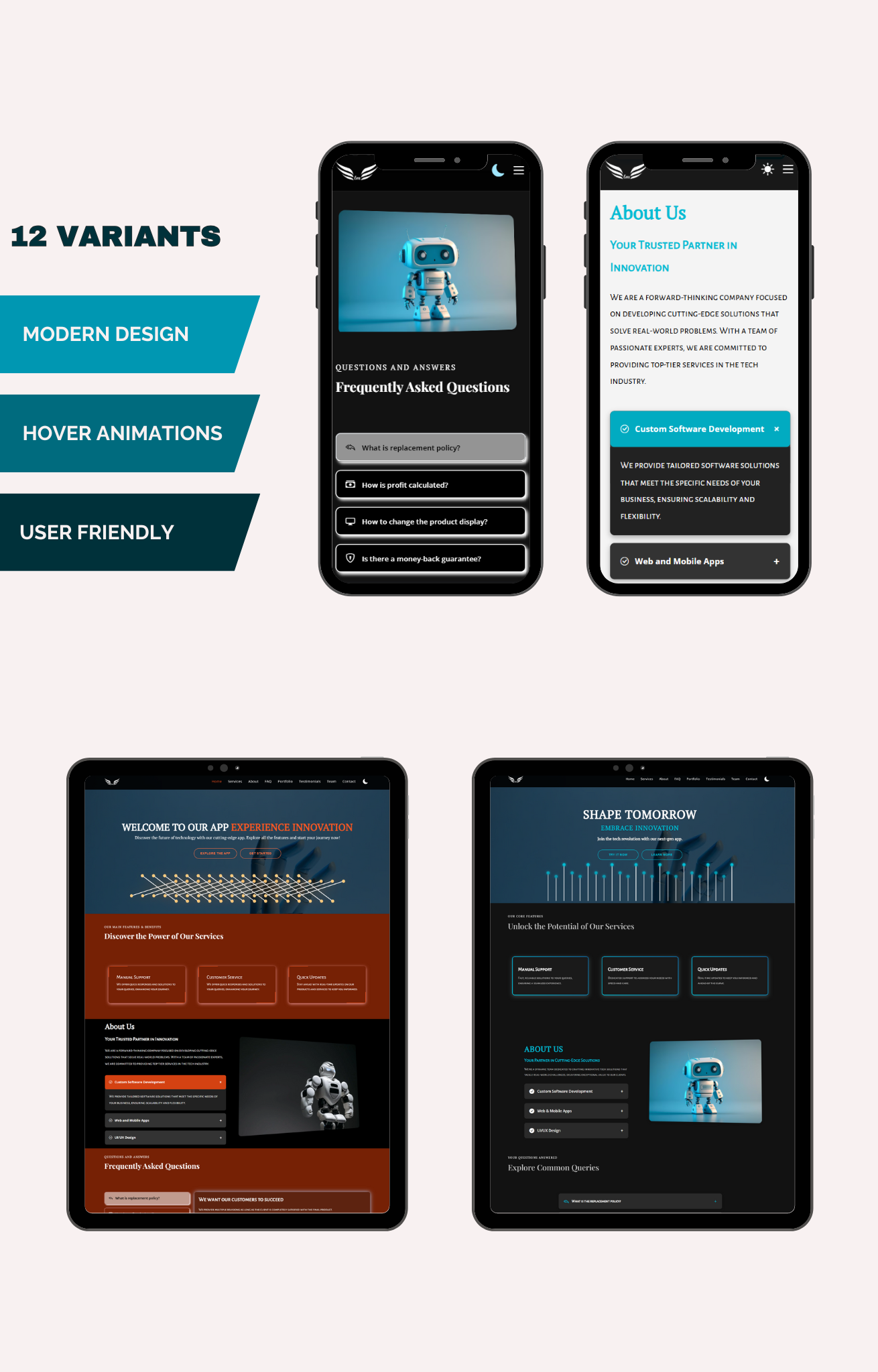 - Responsive Design: Fully optimized for all screen sizes, ensuring your website looks flawless on desktops, tablets, and smartphones, delivering an excellent experience across devices.