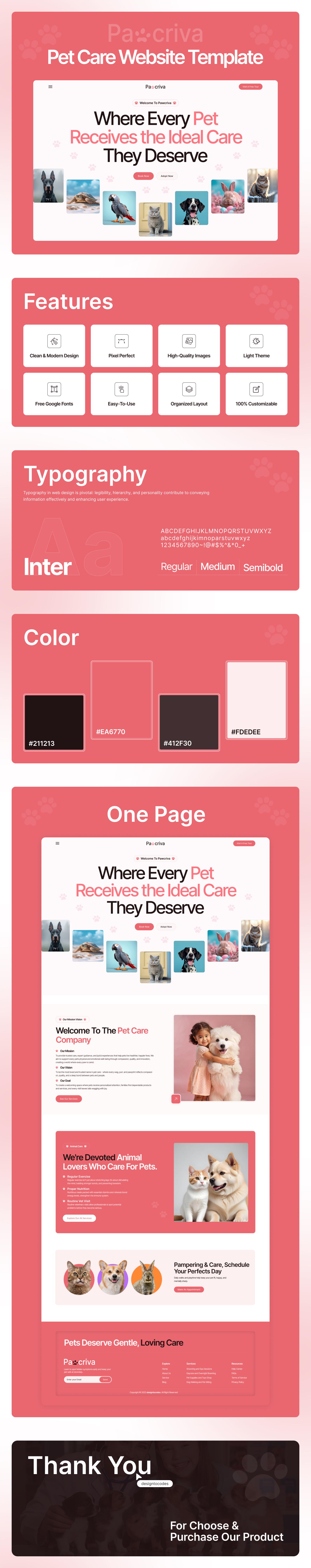 Built with Next.js, Pawcriva ensures ultra-fast load times, smooth performance, and full responsiveness on all devices. This template includes pre-designed sections for services, staff introductions, pet care tips, testimonials, booking forms, and contact information—everything you need to showcase your services and build trust.