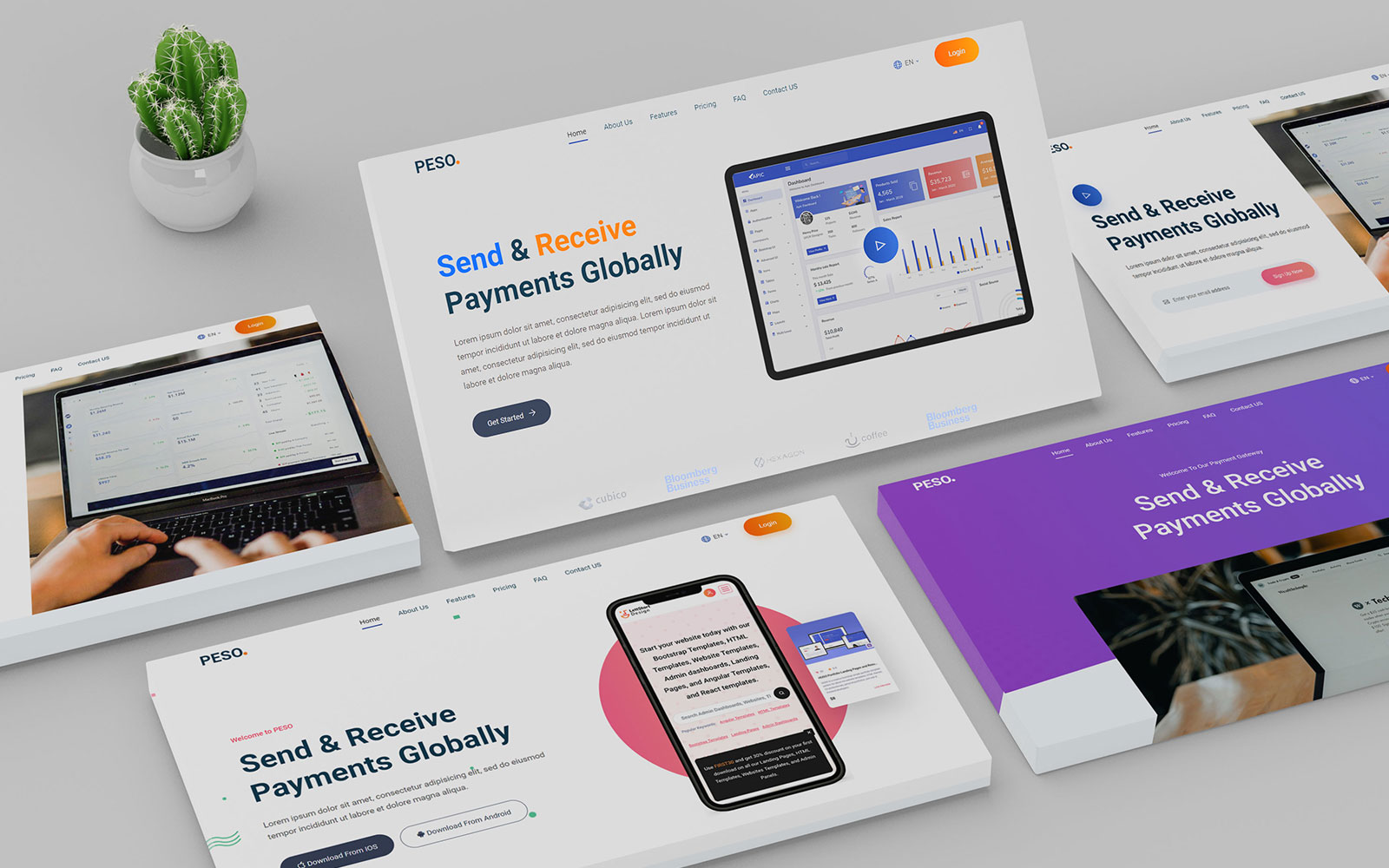 PESO comes with unique layouts of portfolios, apps, and digital agency landing pages. This website bootstrap template is easily customized, fully responsive, and supports all modern browsers and devices. PESO is a full-featured, multipurpose, premium Bootstrap HTML5 website template built with the Bootstrap 5 Framework, HTML5, CSS3, and JQuery. This website template is ideal for portfolio websites, professionals, creative studios, creative agencies, creative companies, app landing pages, app marketing, PPC, personals, digital agencies, single-page websites, one-page websites, consultancies, minimal websites, and promotional pages. These templates are used to showcase your app, work, and profession. This bootstrap template is built with the best animation and UI/UX experience from the user's perspective. This template includes a modern design, clean code, elegant curves, and practical layouts and is easy to customize, change colors, and more.