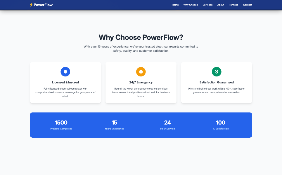 PowerFlow Electrical HTML Tailwind Template Landing Page Template