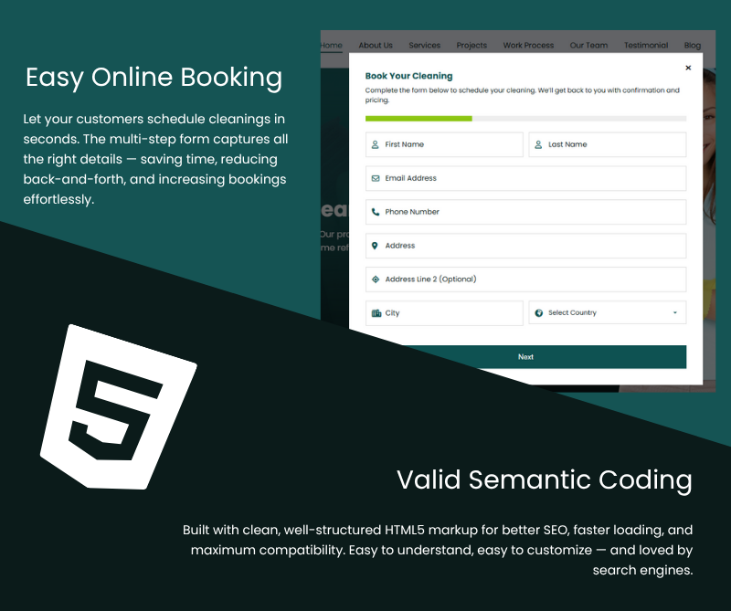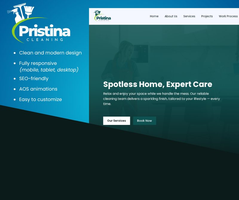 Pristina is a premium HTML5 landing page template designed specifically for cleaning service businesses, janitorial companies, housekeepers, and professional maid services. Built with modern web design trends in mind, Pristina delivers a clean, user-friendly layout that’s fully responsive across all devices.