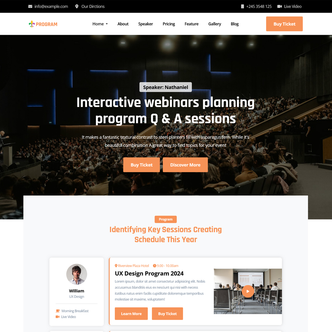 Program - Event & Conference, Meetup Planning Landing Page Template
