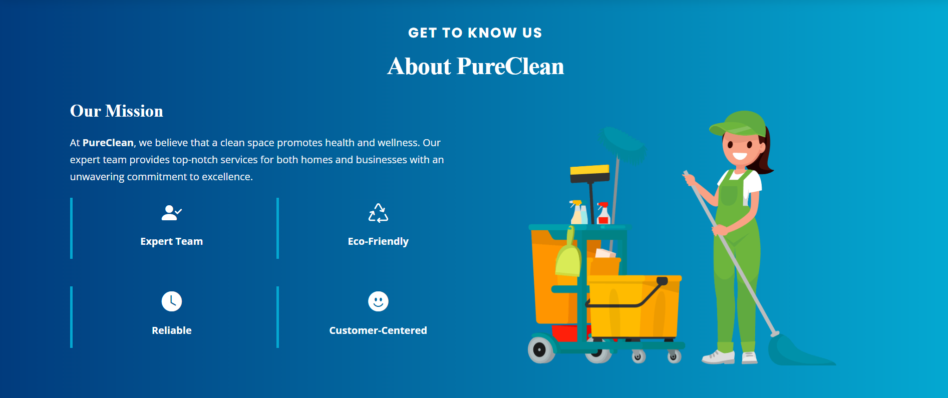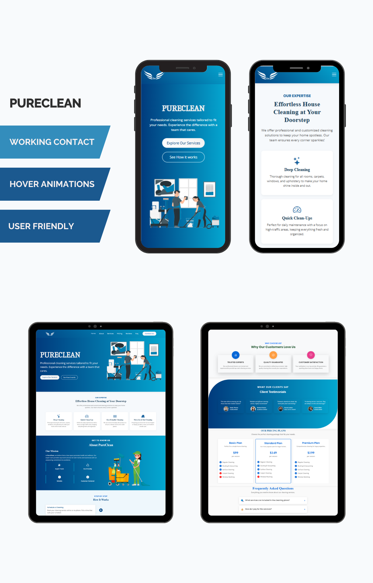 With PURECLEAN, you can create a sleek, customizable, and responsive website that elevates your cleaning business to new heights. Stand out in the competitive cleaning industry and showcase your services with confidence!
