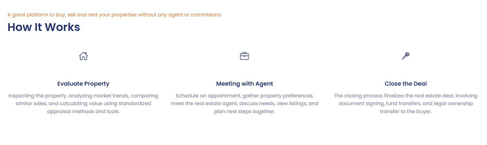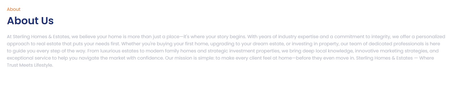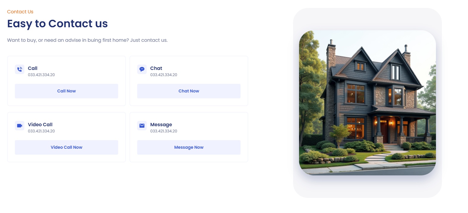 Key sections like “Contact Us,” “Featured Properties,” and “Get in Touch” are designed to drive engagement and conversions. Buttons and forms are prominently placed to capture visitor interest and encourage interaction with potential buyers or renters.