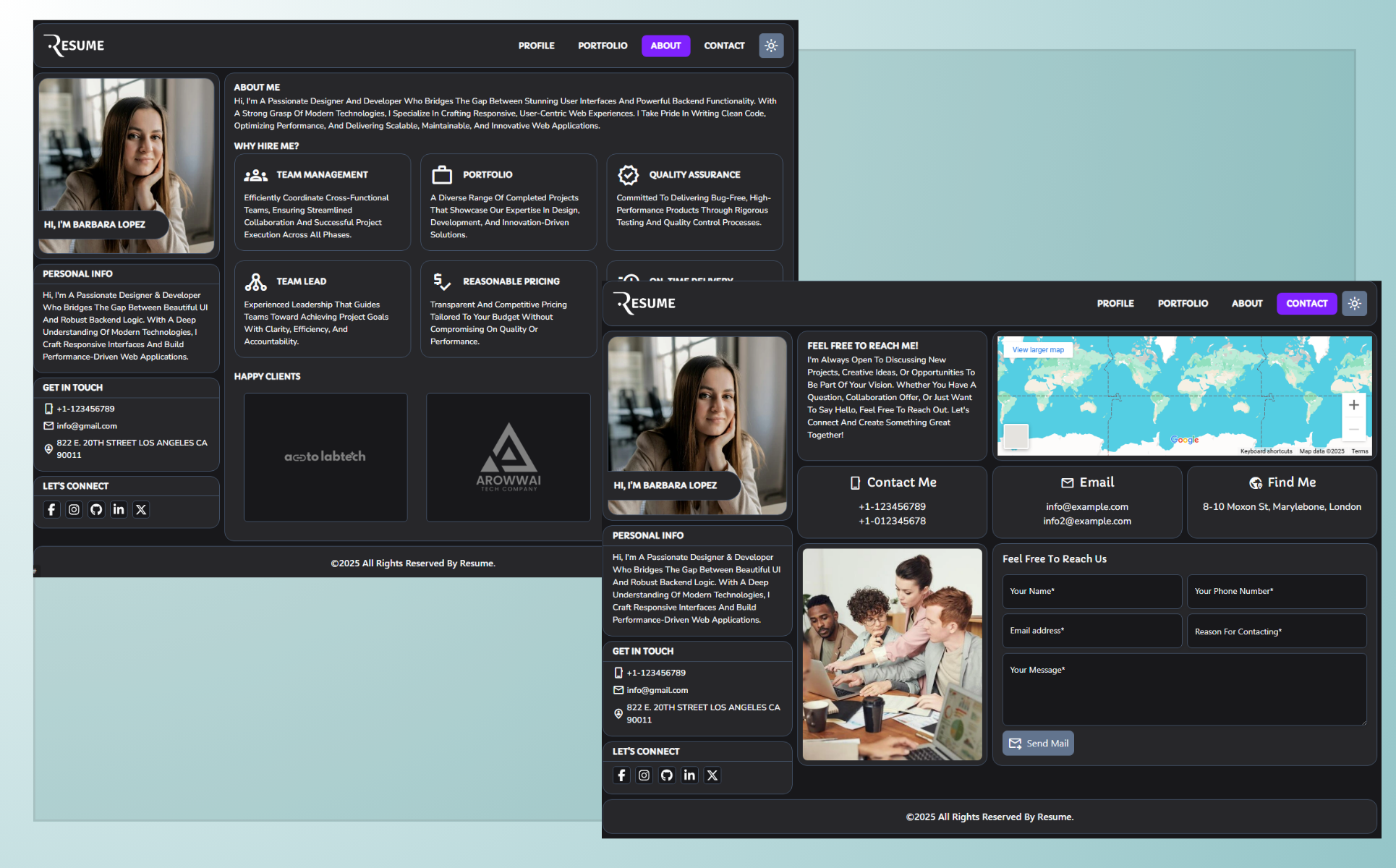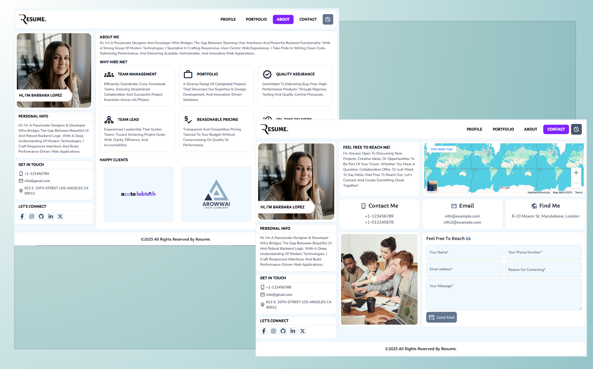 Perfectly tailored for freelancers, developers, designers, and creative professionals, this single-page website template is more than just a digital resume—it's a powerful tool to showcase your expertise, portfolio, and personality in a sleek, responsive, and professional format. With its engaging visuals and intuitive navigation, it ensures your visitors stay longer and get to know your work in the best light possible.