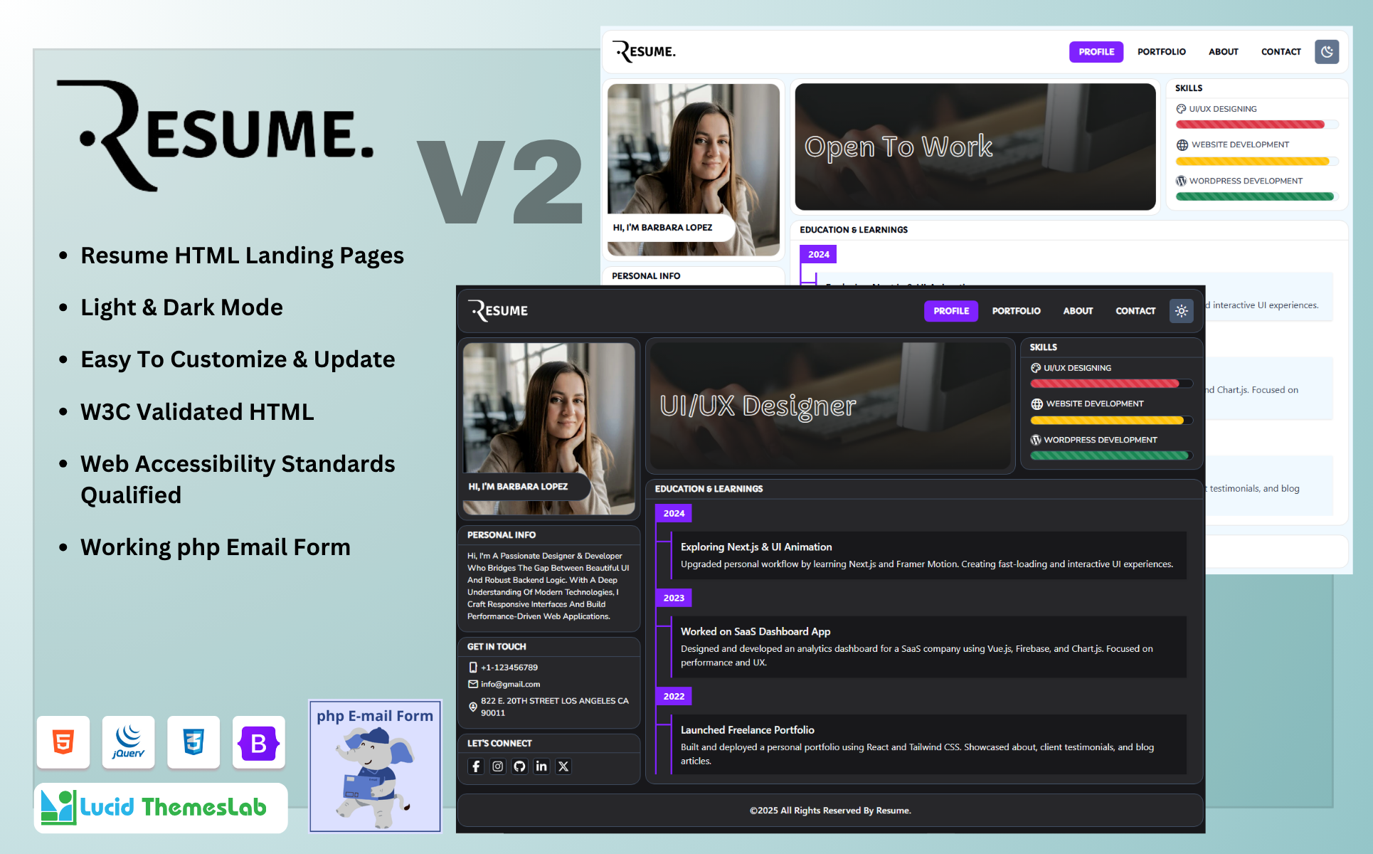 Elevate your personal brand and make a lasting digital impact with Version 2 of our Resume Portfolio Website Template. Thoughtfully redesigned from the ground up, this upgraded release introduces a fully restructured layout for better performance and scalability, seamless PHP email integration for direct communication, and a refined modern UI that enhances the overall user experience.