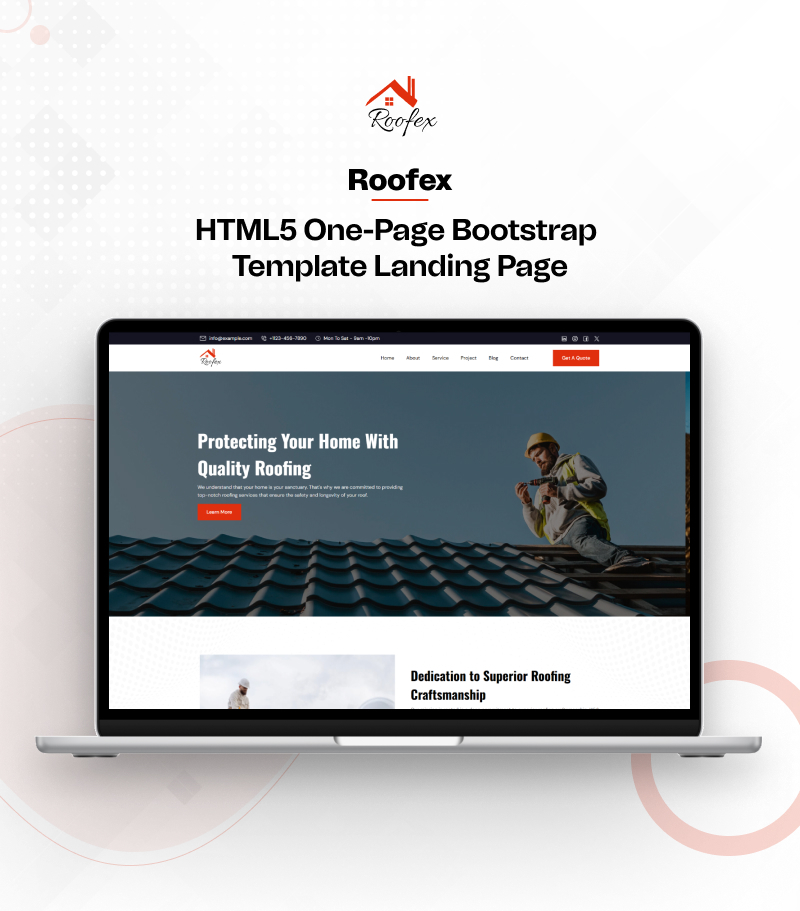 Roofex is a sleek and fully responsive HTML one-page template crafted specifically for roofing companies, contractors, and home improvement service providers. Designed with a clean and modern layout, Roofex is perfect for showcasing services like roof installation, repair, inspection, and maintenance in a professional way.