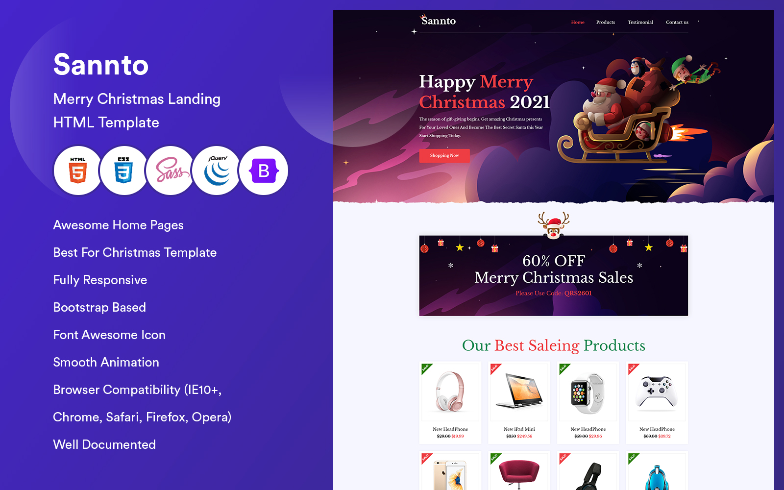Sannto is a jolly and festive-searching internet site template for HTML. Sannto is best for developing a touchdown web page for your Christmas sales, Christmas offers, Christmas party, or every other comparable festive occasion. This responsive single-web page template is constructed with Bootstrap Version and Essential Static so that you can not customize it in any manner you need with no coding. Sannto is likewise like-minded with Bootstrap 5. x so that you can effortlessly promote your unique Christmas merchandise with this touchdown web page template.