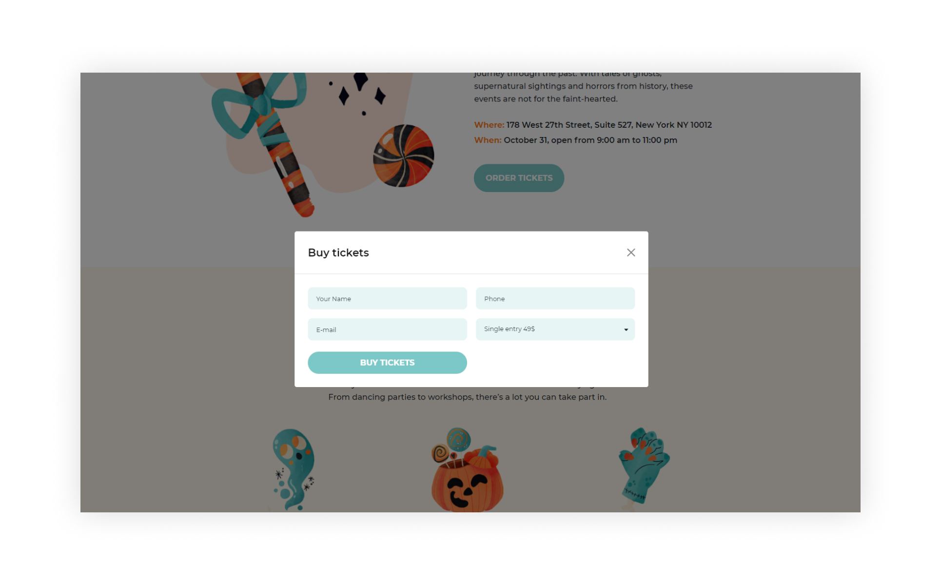 Still, not every event agency can afford to hire a web designer to create a site that meets their expectations. However, you can always use the professionally built HTML5 website templates and landing pages. They are specifically designed for such events as Halloween parties. Being affordable and easy to use, such solutions are great for any event website. And if you are looking for a Halloween template that looks effective yet simple, we have something to offer you.