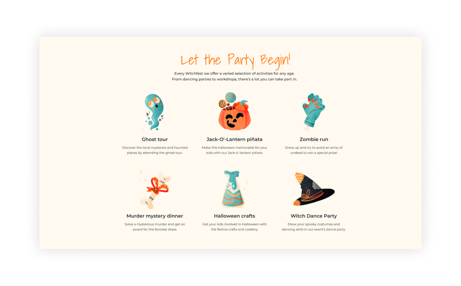 The Halloween landing page template provides a wide choice of tools for successful web development. Nowadays, having a well-developed website is important for any event. However, developing a website on your own, especially without the required experience won't be of any help. That's why many agencies that organize Halloween events usually hire web developers. Such an approach allows them to have a professionally designed website developed from scratch.