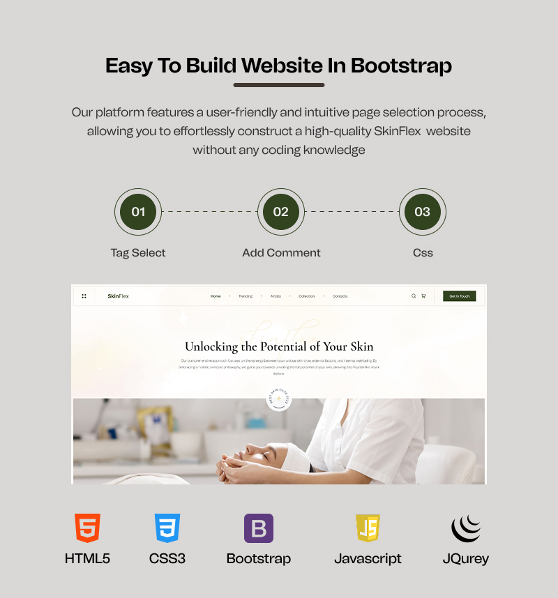 Skinflex is a modern, fully responsive HTML website template designed for skincare clinics, dermatologists, cosmetic professionals, beauty salons, and wellness centers. Built with HTML5, CSS3, and Bootstrap, it features a clean and elegant layout that includes dedicated pages for services, about, testimonials, blog, and contact. Skinflex is mobile-friendly, SEO-optimized, and easy to customize, making it ideal for showcasing skincare treatments, beauty packages, and client reviews. Whether you're launching a dermatology clinic or promoting cosmetic services, Skinflex provides a professional digital presence to engage visitors and convert them into clients.