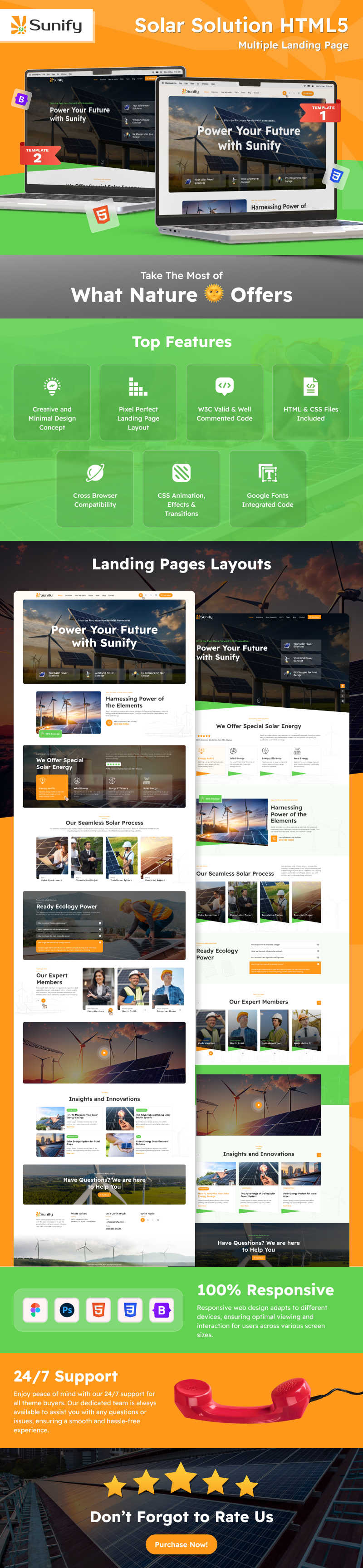 - Eco-Friendly Aesthetics: Sunify incorporates eco-friendly aesthetics that resonate with the solar energy theme. Vibrant imagery, and nature-inspired elements help convey your green message effectively.