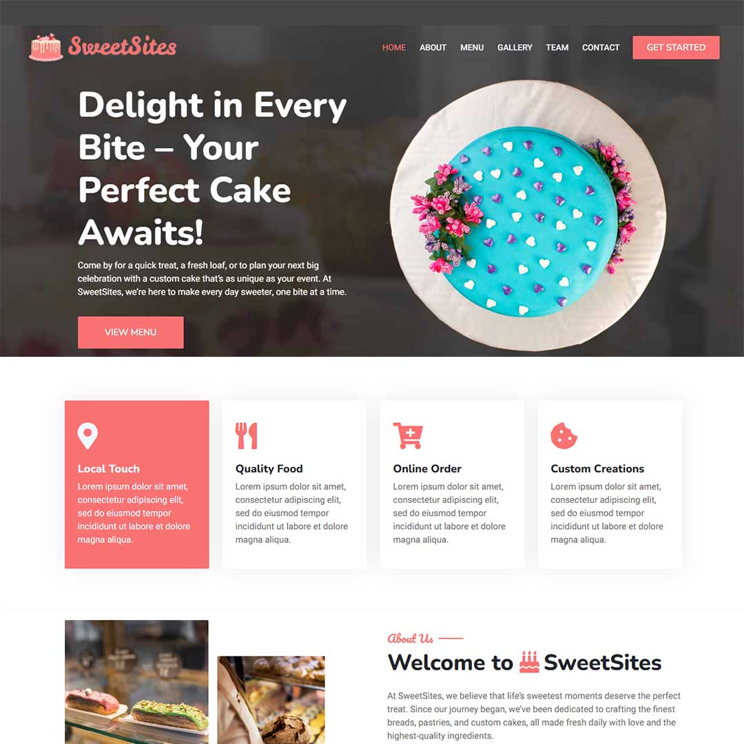 SweetSites - Bakery & Cake Shop Bootstrap Landing Page Template