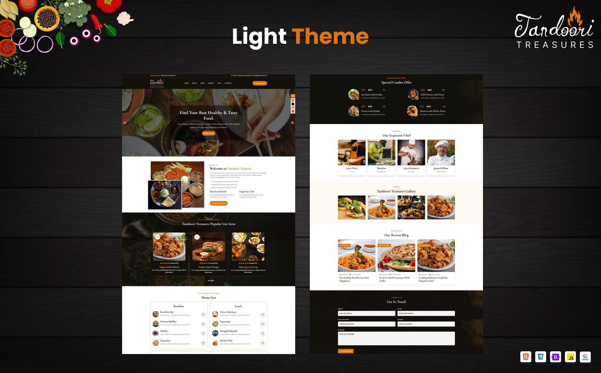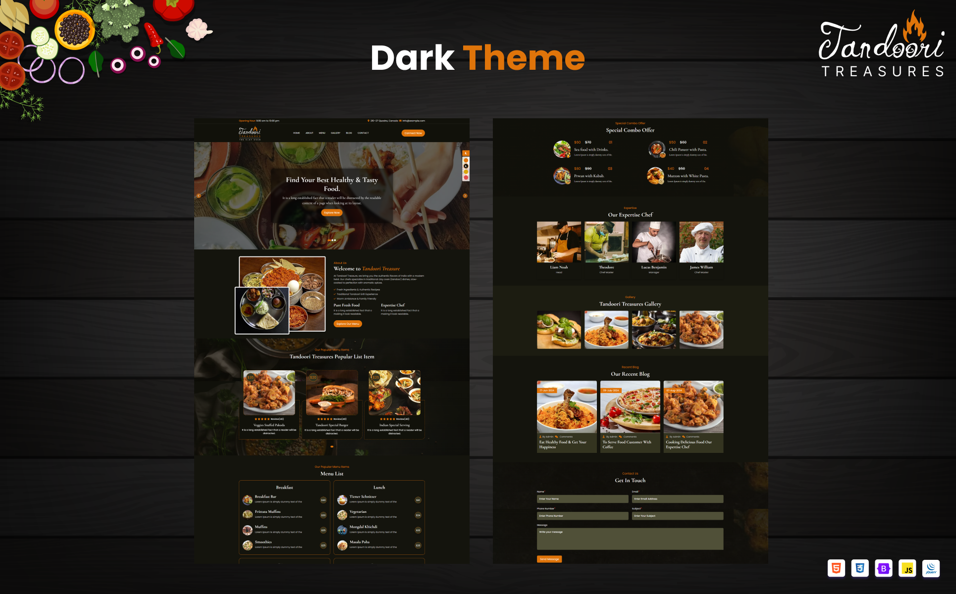 Introducing the updated Tandoori Treasure One Page HTML5 Template – a modern, stylish, and fully responsive design crafted specifically for Indian restaurants, catering services, and takeaway food businesses. Built using Bootstrap 5, this template delivers a seamless browsing experience with smooth Smooth scrolling, eye-catching animations, and both light and dark themes, with all the important sections you need—like the menu, photo gallery, customer reviews, and contact form.