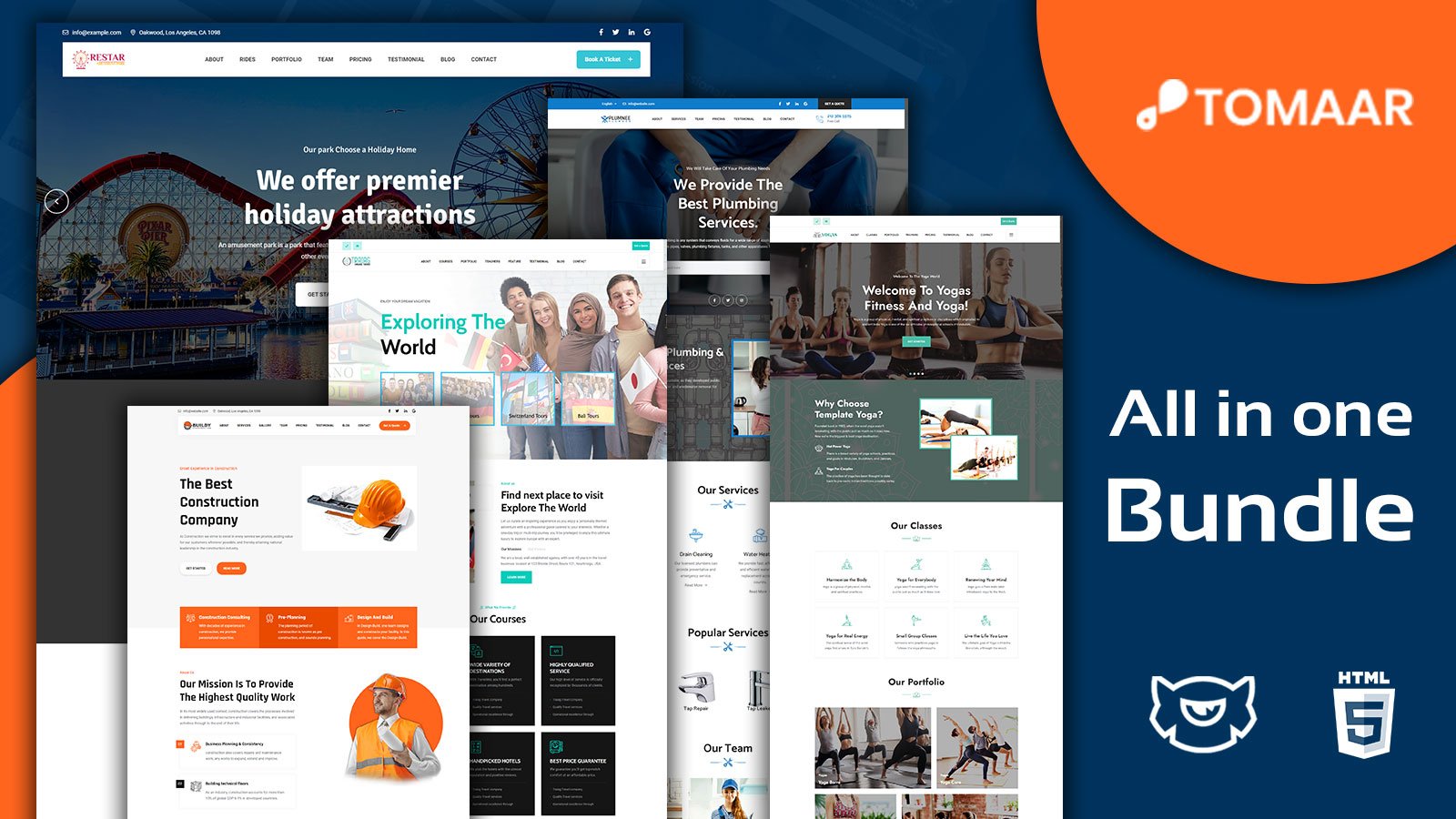 As mentioned in the title, Toomar is a Business Multipurpose Bootstrap 4 Premium Landing page Template Bundle packed with 10 Diffrent landing pages with 10 different business niches. Guaranteed the lowest price in the market for such value, with more 100 HTML sections and a functioning contact form Toomar Business Multipurpose will satisfy all your needs. Toomar Business Multipurpose Landing Page Bundle Template covers several categories such as