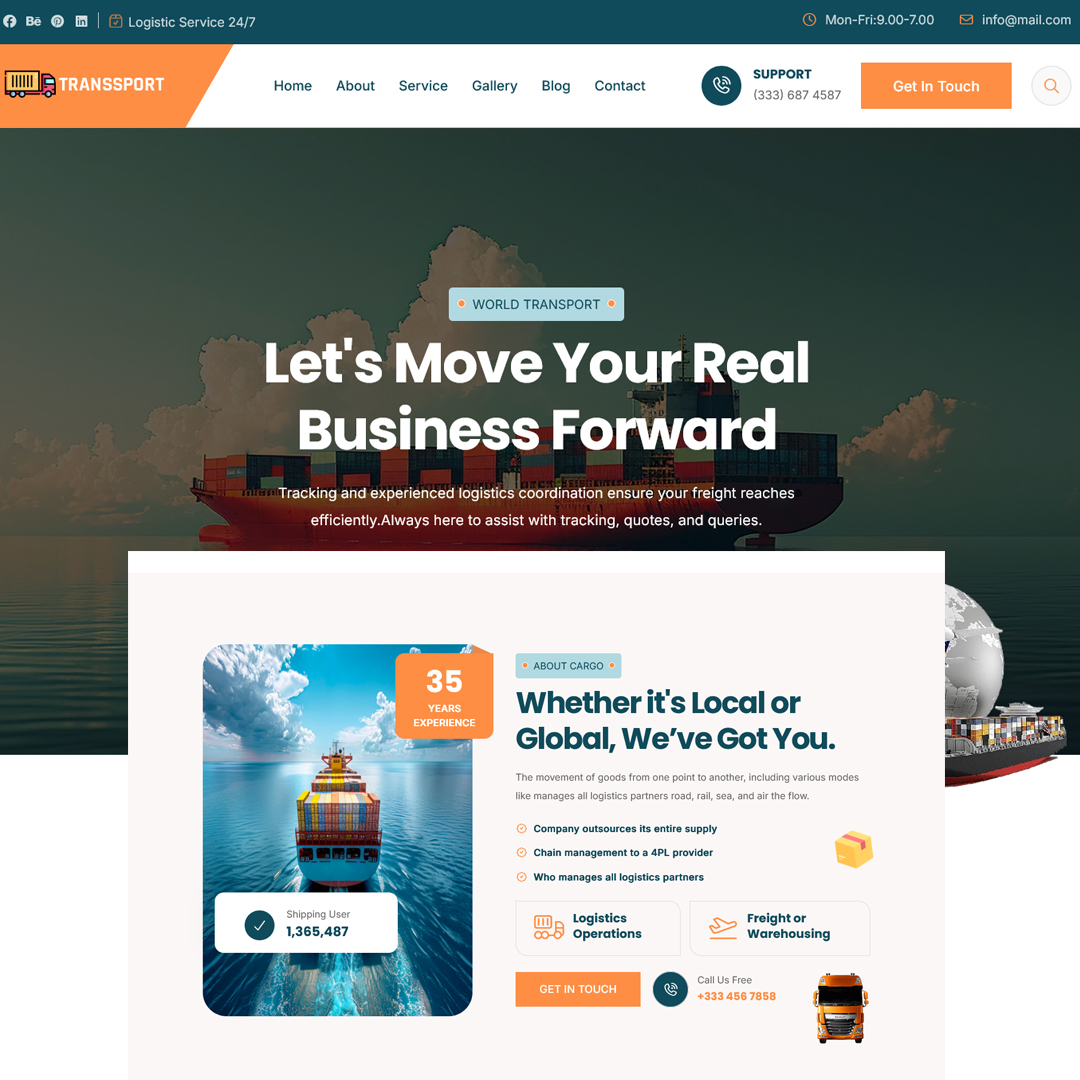 Transsport is a sleek, modern, and fully responsive HTML template built specifically for transport, logistics, courier, and relocation services. With built-in blog and gallery layouts, Transsport allows you to create a professional-grade website quickly—without the need for complex design or coding skills.