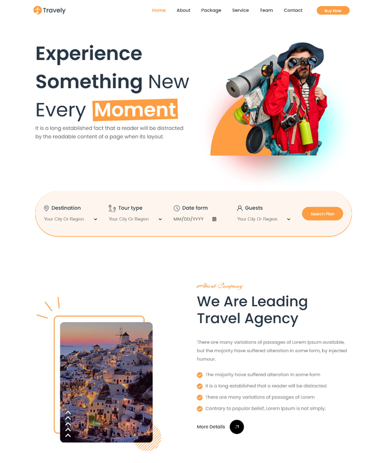 Whether you're promoting exotic getaways, adventure tours, or weekend retreats, Travely is the perfect template to showcase your offerings and inspire wanderlust.