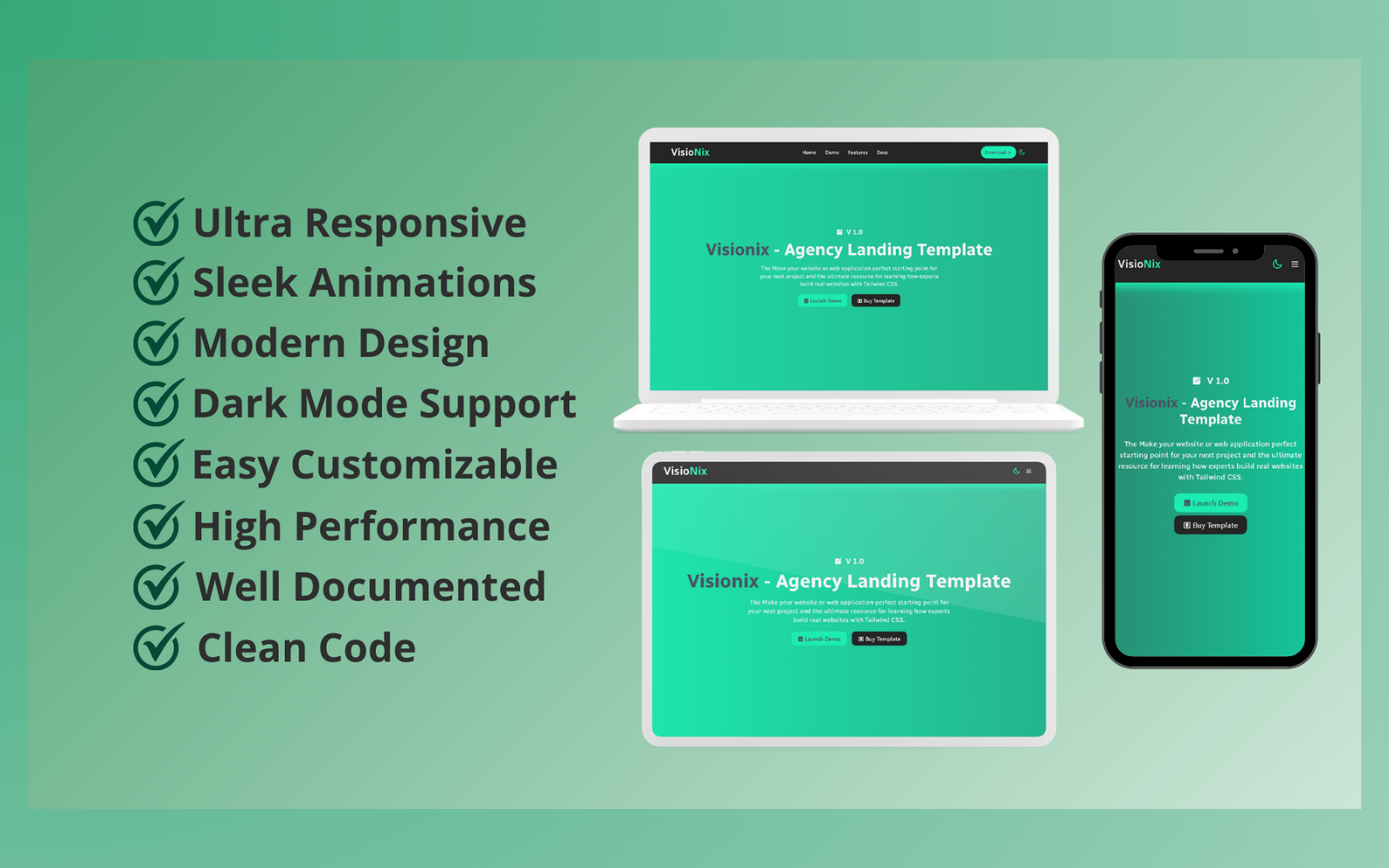 Beyond its reliance on Tailwind’s core features, Visionix incorporates custom CSS and JavaScript, ensuring fine-tuned design elements and enhanced functionality. Its clean and well-structured folder architecture makes it incredibly easy to navigate, modify, and integrate into various frameworks like Next.js, Nuxt.js, and Laravel. Performance is a top priority, every component is optimized to load efficiently and run smoothly across all modern browsers, providing an exceptional user experience regardless of device or platform.