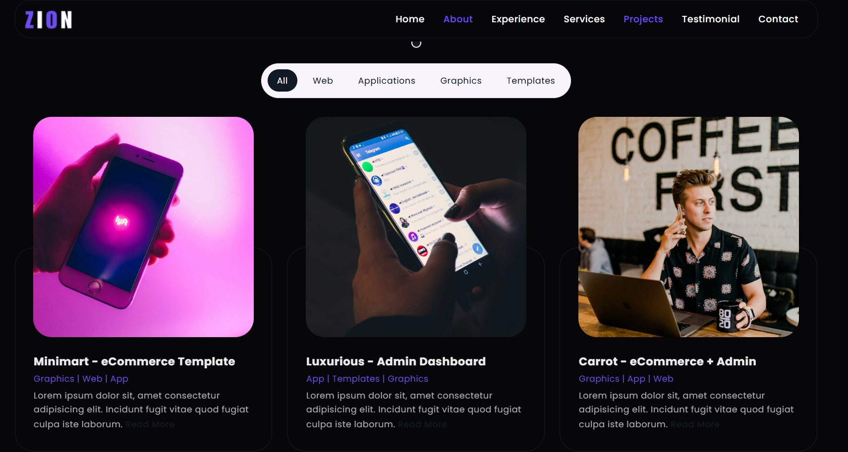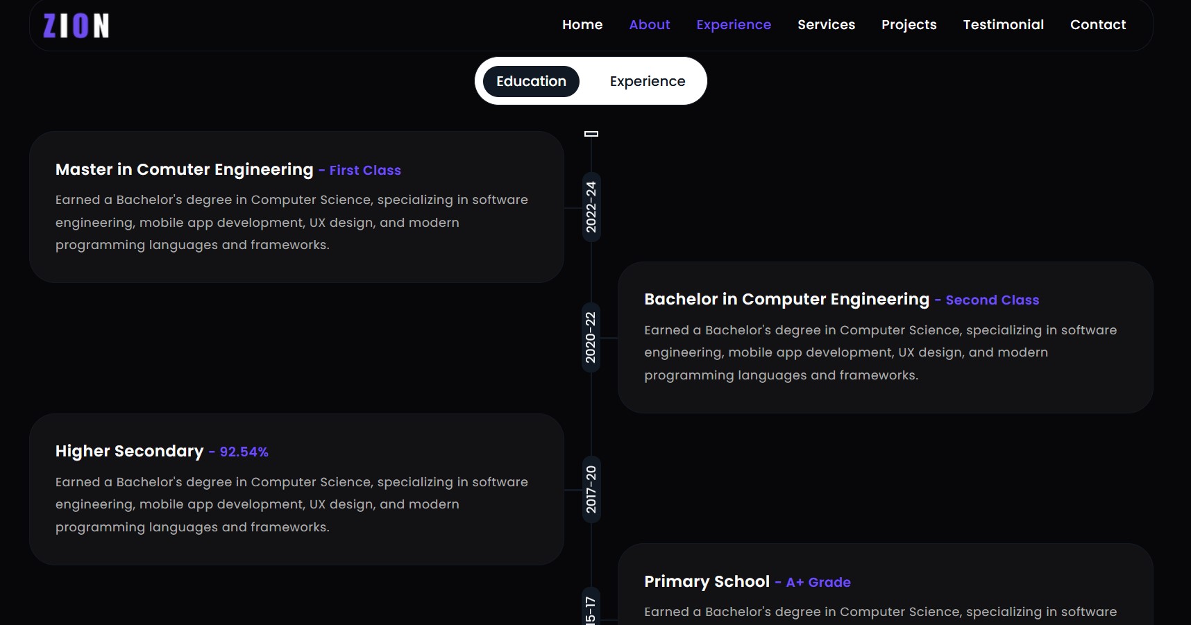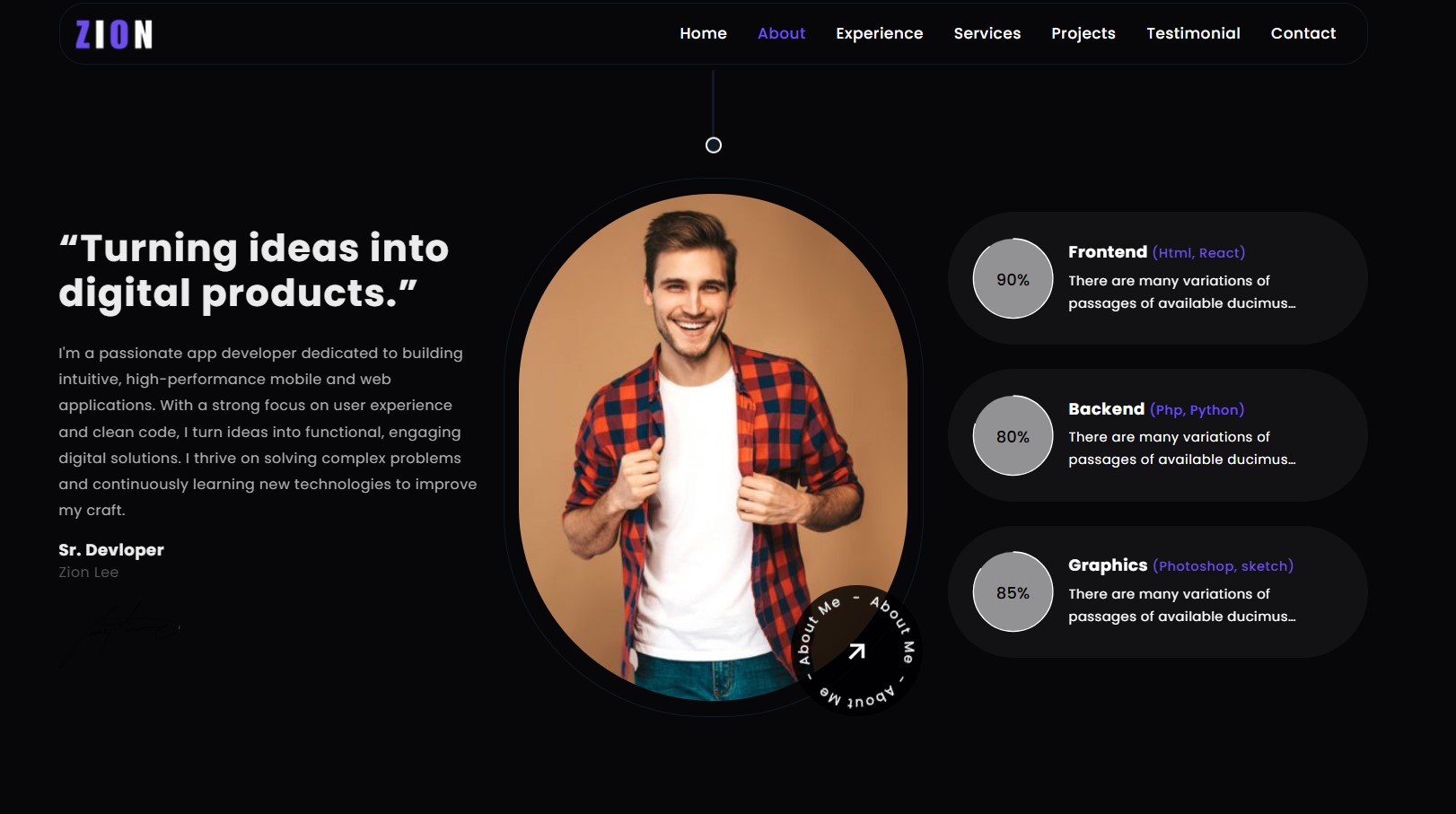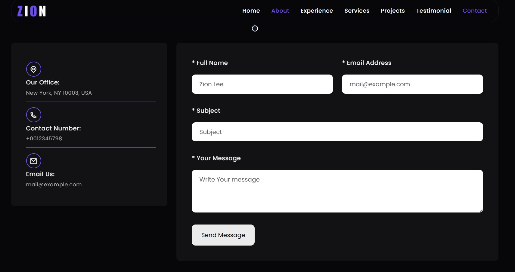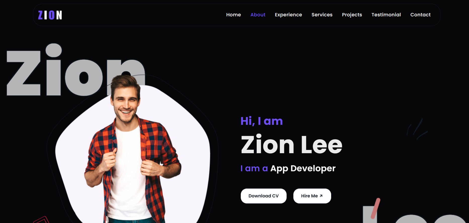 Zion- Personal Portfolio Landing Page HTML Template Landing Page Template