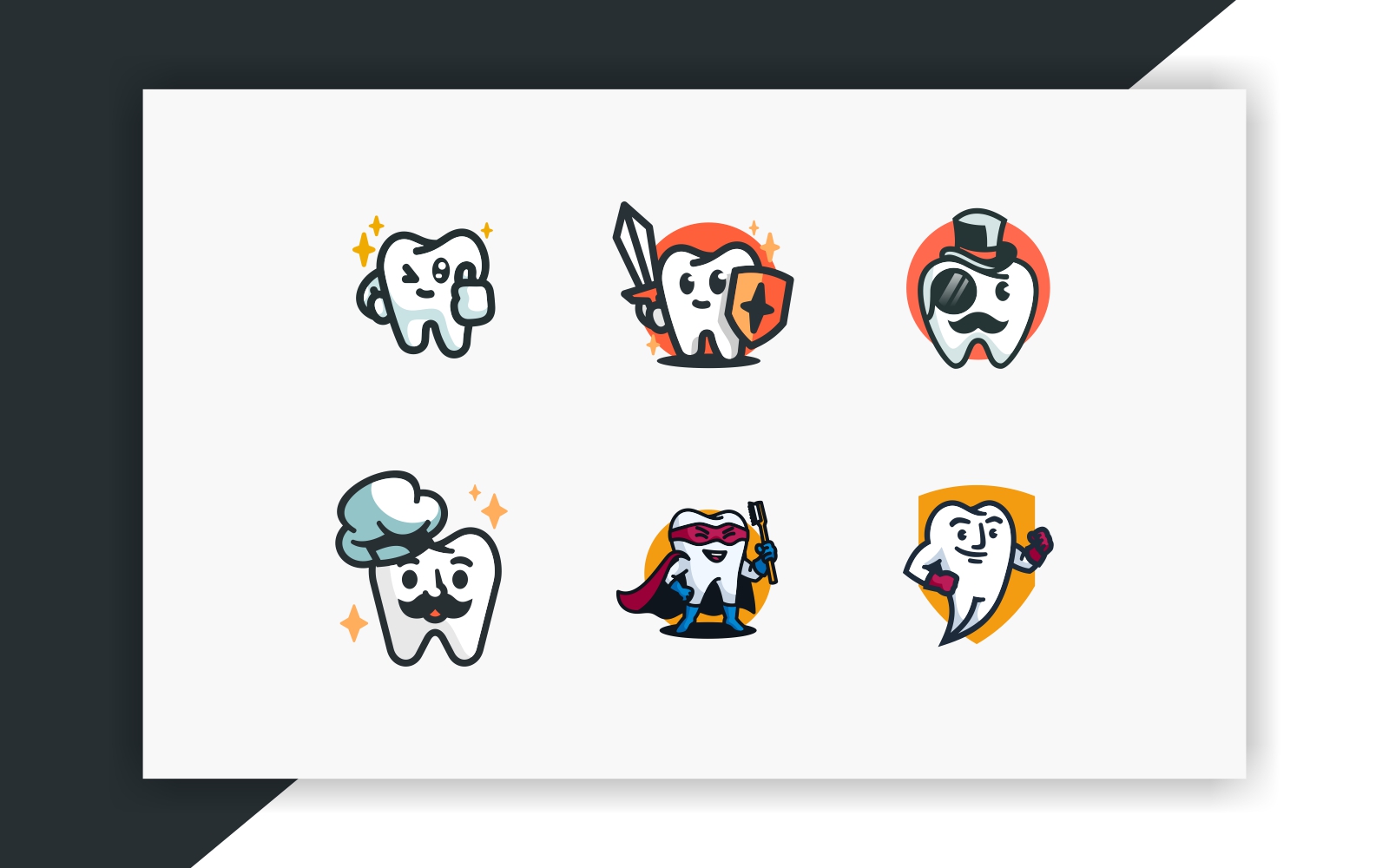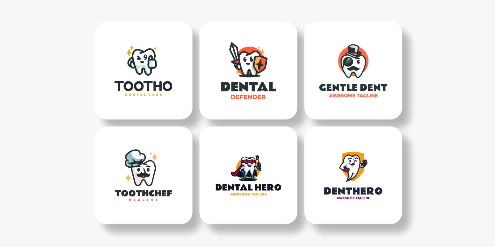 6 Mascot Dental Logos – Cute Cartoon Character Set