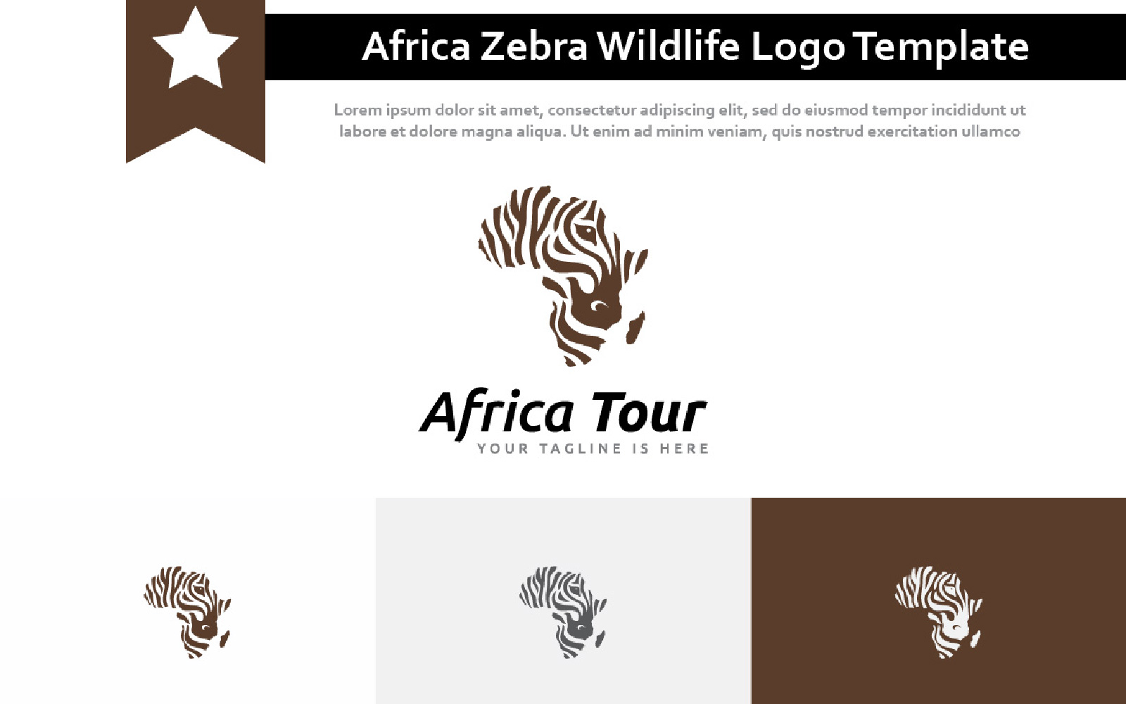 Africa Zebra Silhouette Animal Wildlife Tour Travel Logo Template